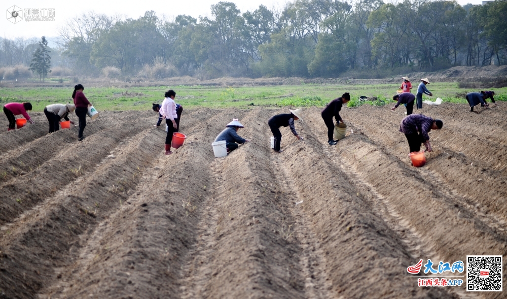 2020年2月27日,在江西省上饶市铅山县青溪服务中心孔家村扶贫产业葛根种植基地,村民正在忙着种植葛根。据悉,铅山县青溪服务中心引导发动群众积极开展春耕生产,大力防止抛荒,在孔家村荒滩开垦种植200亩葛根,通过合作社带动贫困户参与,因户施策,带动42户146人贫困户增收。