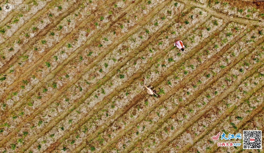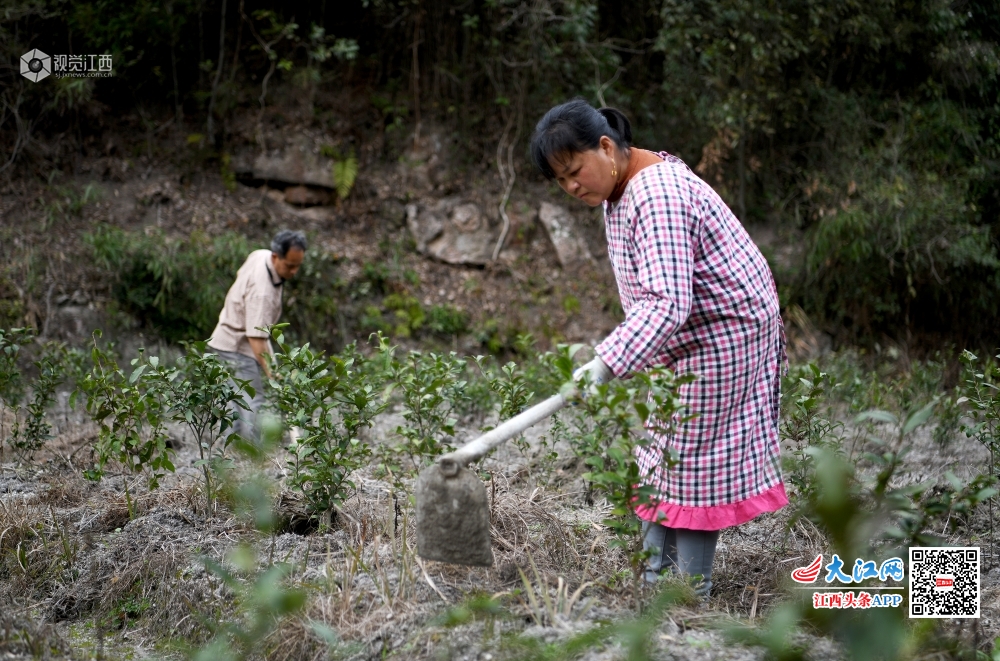 2020年2月28日,在江西省上饶市铅山县天柱山乡高泉村,该村贫困户邓先勇夫妇正在茶园除草。近年来,铅山县天柱山乡利用当地好山好水等自然资源优势,鼓励贫困户大力种植有机茶叶,同时把昔日抛荒田进行复垦种植茶叶,把荒田变茶园,增加贫困户收入。