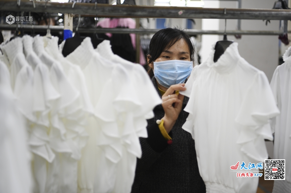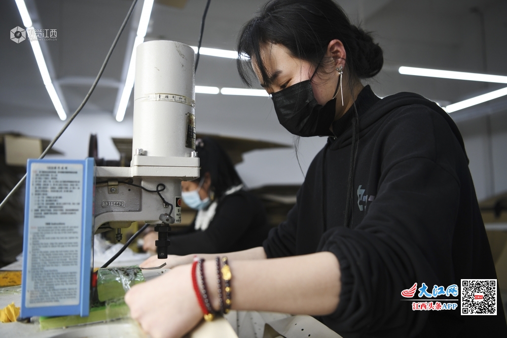 2020年2月29日,在江西省上饶市铅山县新滩乡一公司,工人正在赶制外贸出口订单。