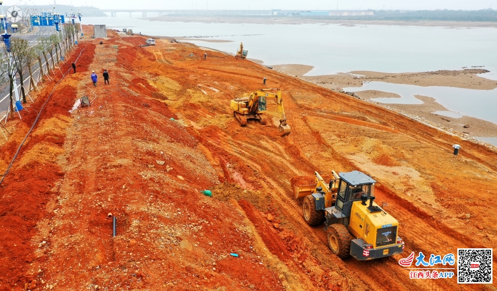 连日来,江西省吉安市泰和县赣江最美岸线建设项目——滨江景观工程复工建设,大型机械设备紧张有序施工作业。