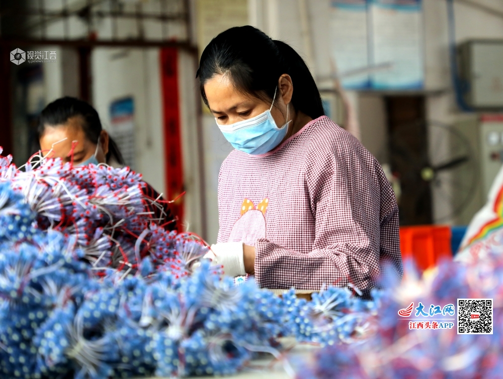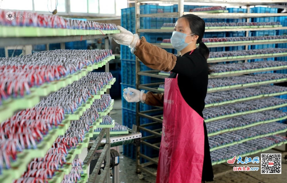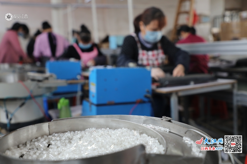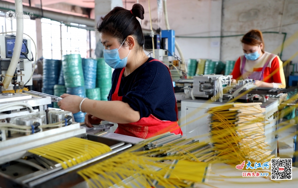 2020年2月28日,在江西省吉安市永丰县佐龙乡一扶贫生产车间里,三条由当地留守妇女、贫困户组成的生产线正在加紧赶制一批发往浙江、广东的订单。