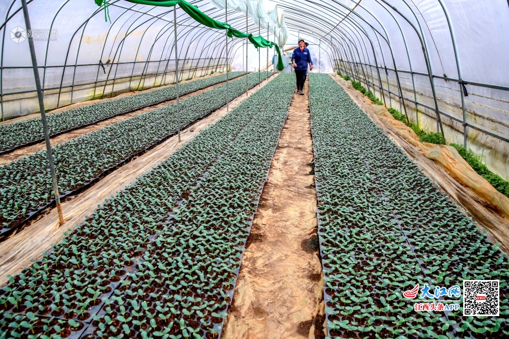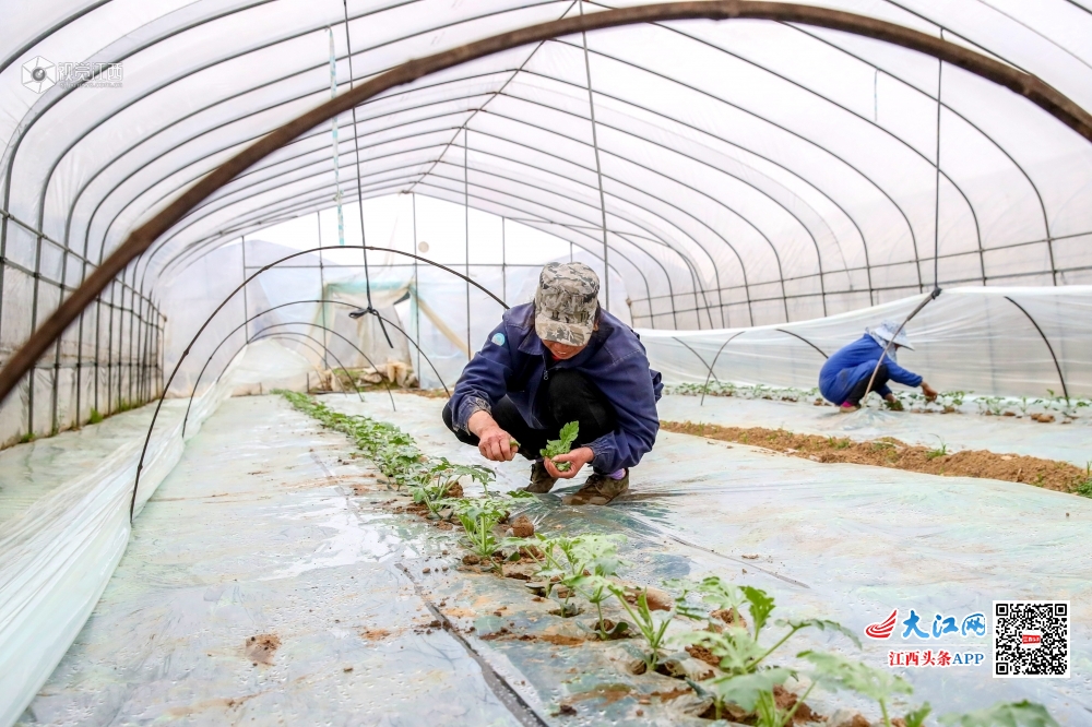 2020年3月2日,在江西省吉安市峡江县马埠镇凤山村,村民在大棚内管理西瓜秧苗。