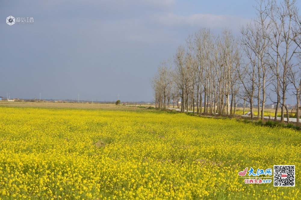 3月1日是难得的睛天,蒋巷镇道路两边种植的油菜巳经开花了,在阳光的照射下甚是漂亮。