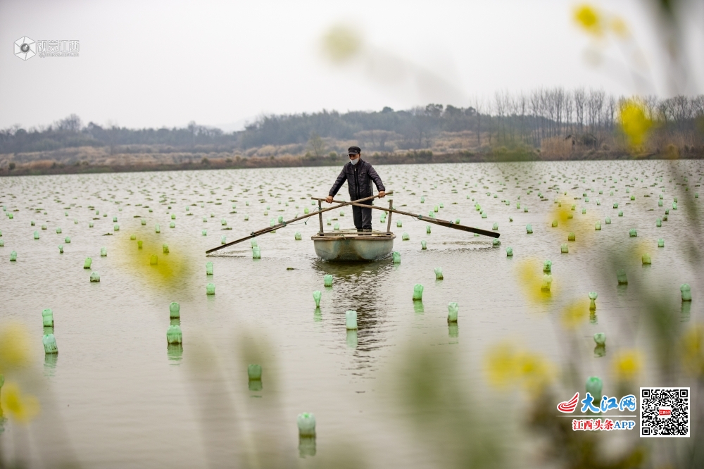 3月4日,江西省湖口县舜德乡棉湖综合养殖场300余亩珍珠贝孵化基地正在进行春季管护。