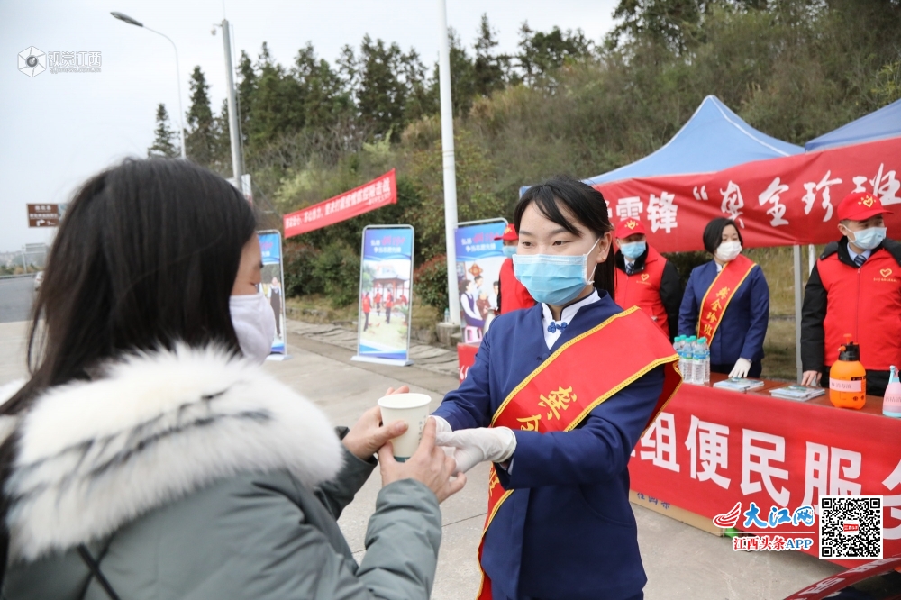 “您好,龚全珍班组欢迎您!”3月5日,在高速出口莲花站,江西高速集团吉安管理中心莲花管理所“龚全珍班组”正在开展“学雷锋”活动,志愿者们给过往的司乘人员送上了热水、泡面、防疫知识宣传手册等物品,用热情的服务、关切的话语,让在外奔波的人们倍感温暖。