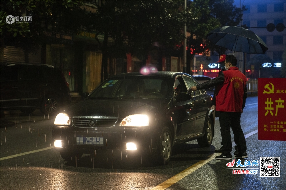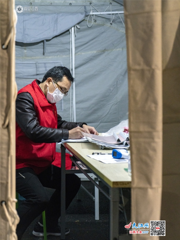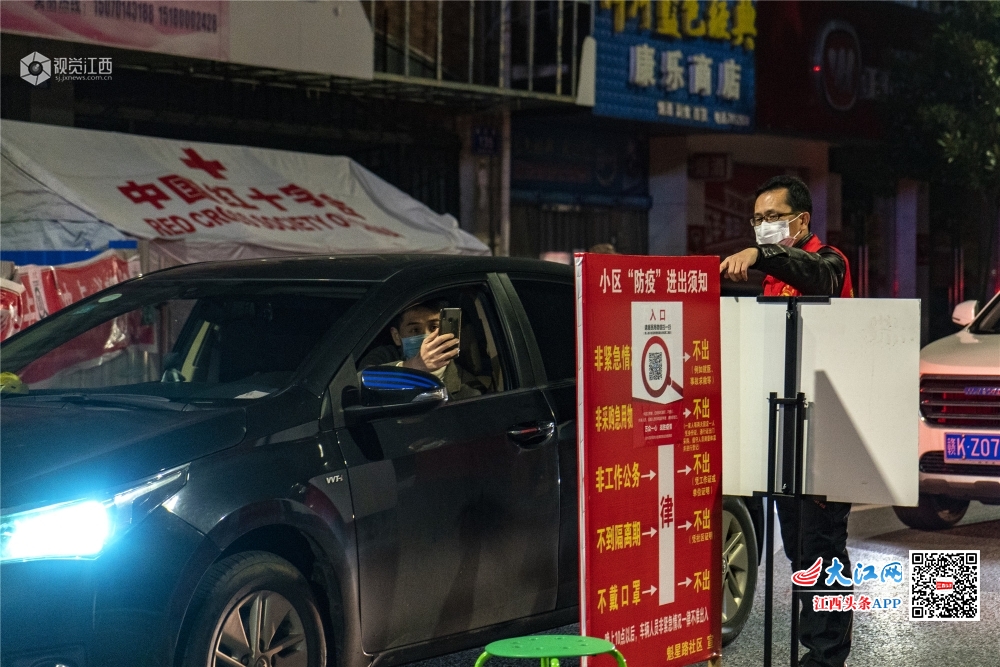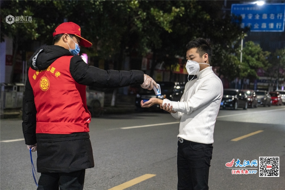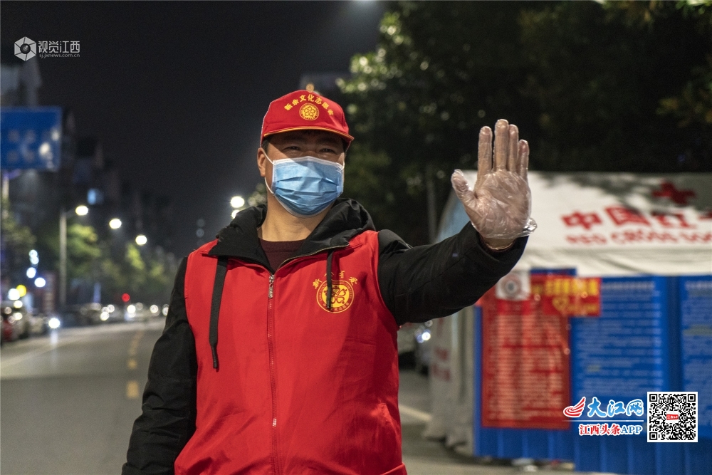 2020年3月5日晚,江西省新余市文广新旅局党员干部在疫情防控卡点值守。