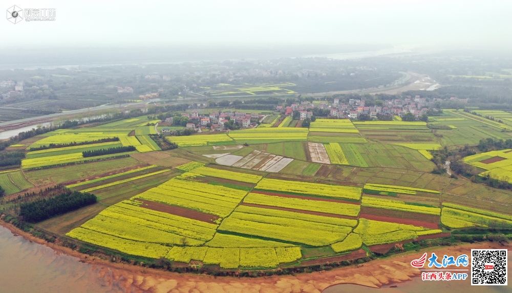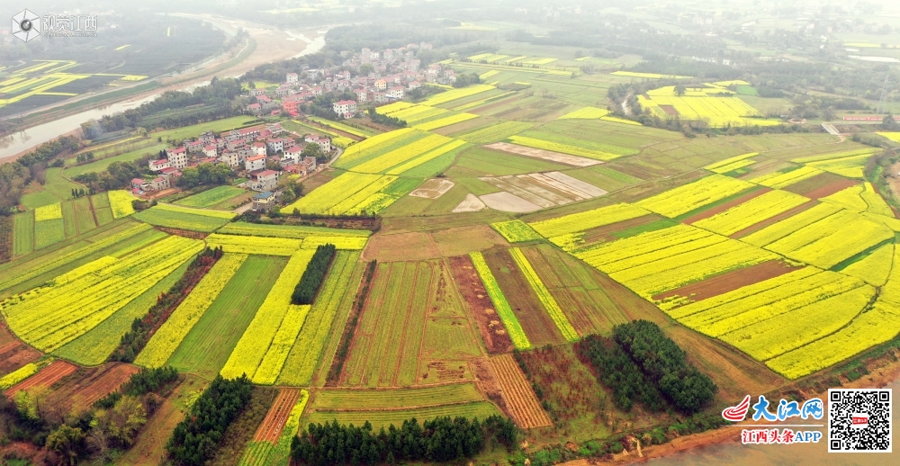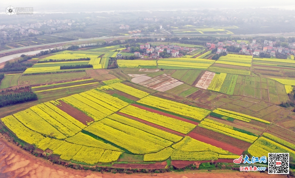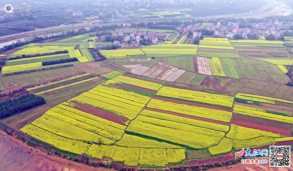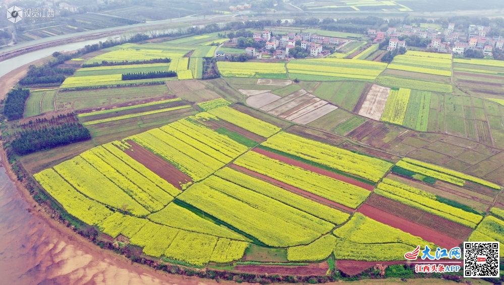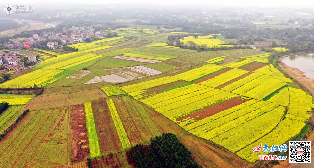 近日,江西省吉安市泰和县10万多亩油菜花渐次盛开,片片金色花海与周围的秀美村庄、蜿蜒河流、绿树青山交相辉映,乡村田野处处是景,美不胜收。