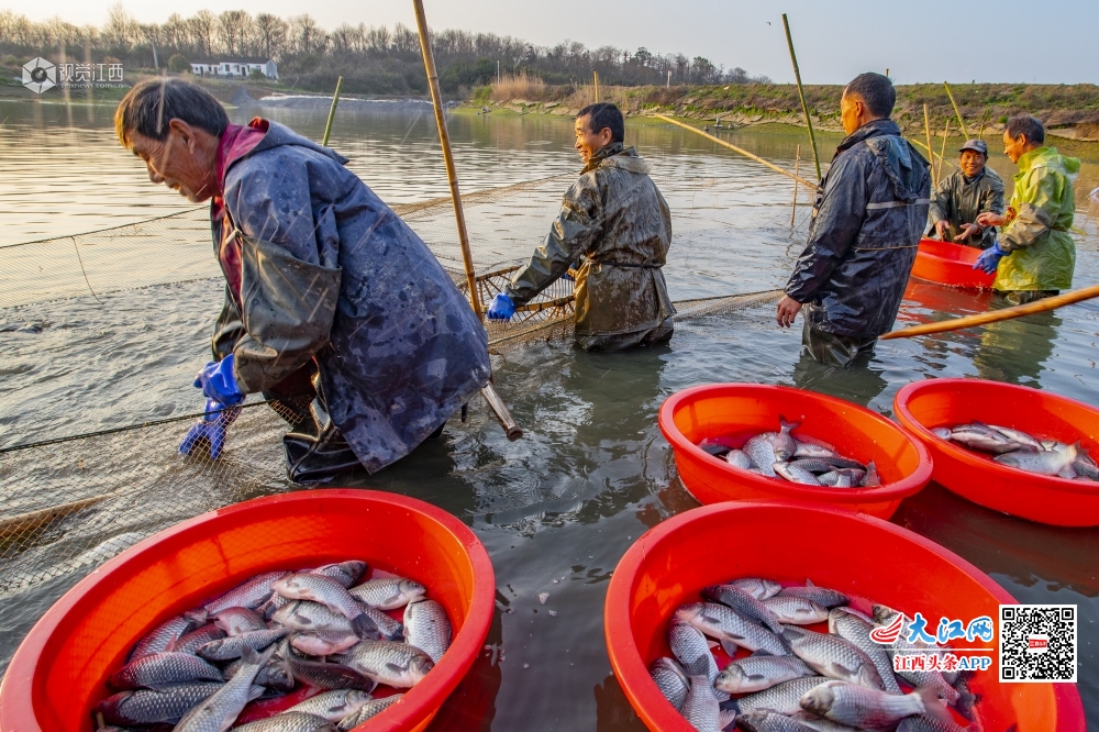 3月7日,江西省九江市湖口县均桥镇德祥养殖场正在进行鱼苗管护。当前,天气逐步回暖,渔民抢抓有利天气,对400余亩鱼苗孵化基地进行选苗育苗作业,确保渔业丰产丰收。
