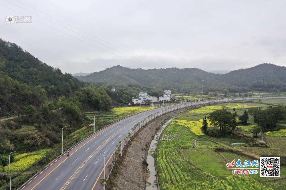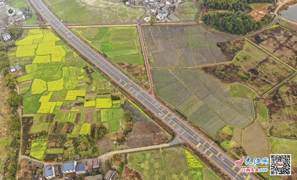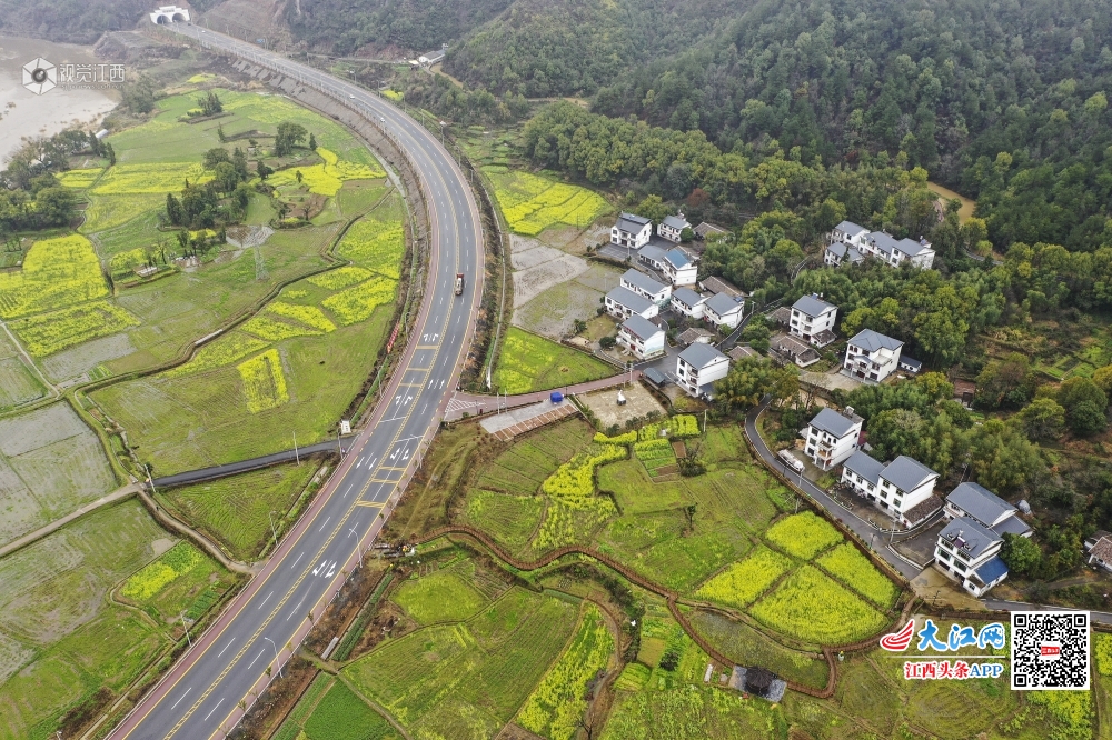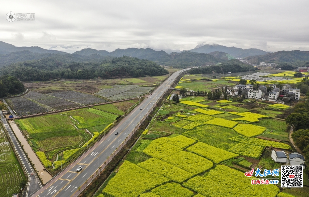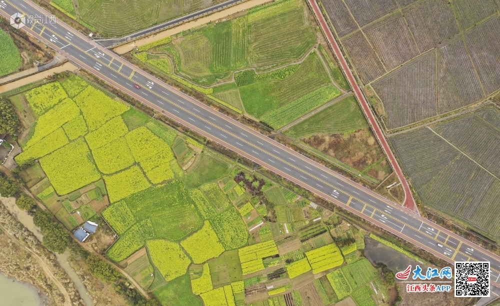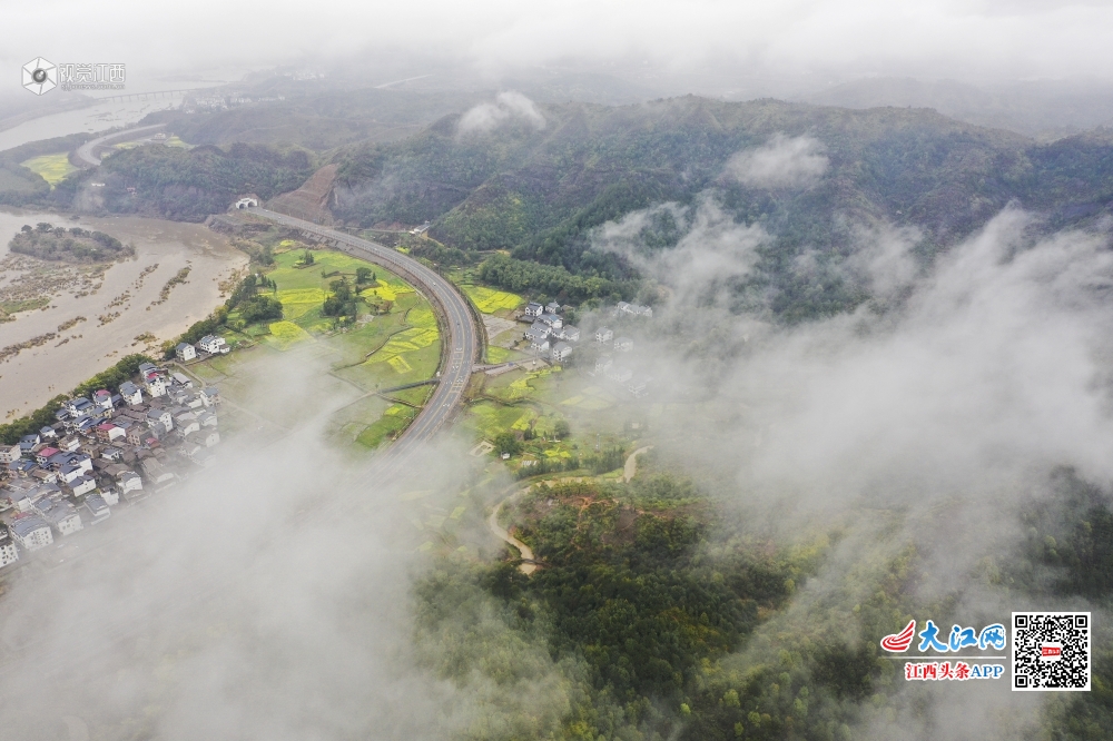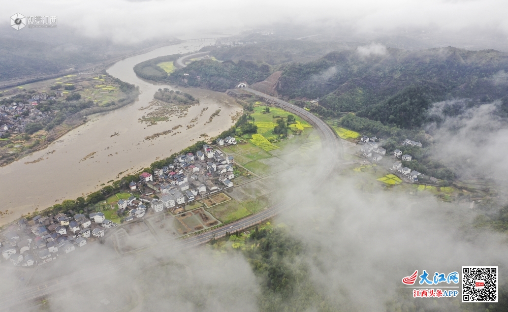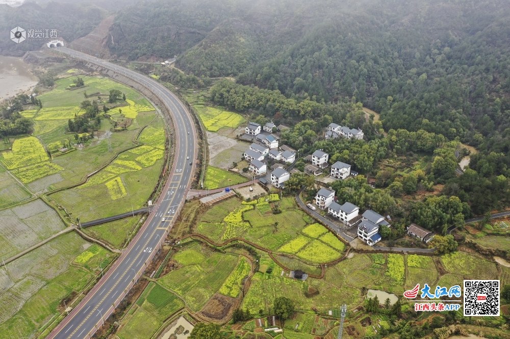 2020年3月9日,航拍雨后江西省上饶市铅山县永平镇安洲村油菜花,雨后的乡间田野在油菜花的点缀下,与白墙黛瓦的民居相映,构成一幅幅美丽的春色画卷。