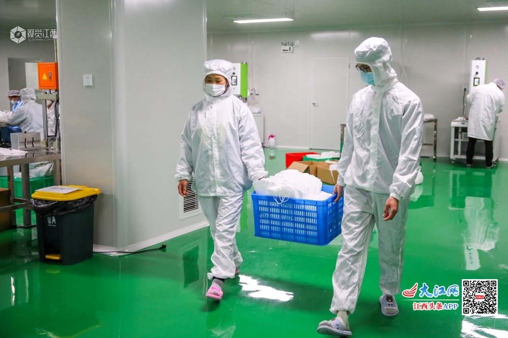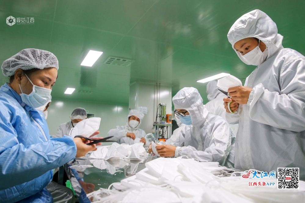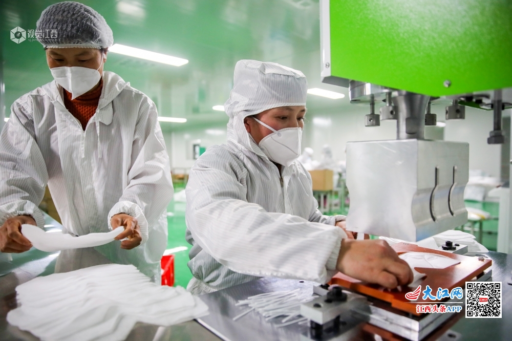 疫情发生以来,峡江县积极引导企业紧急规划生产车间,采装生产设备,培训生产能手,转产扩产防护口罩、防护服和消毒液等医疗防护用品。