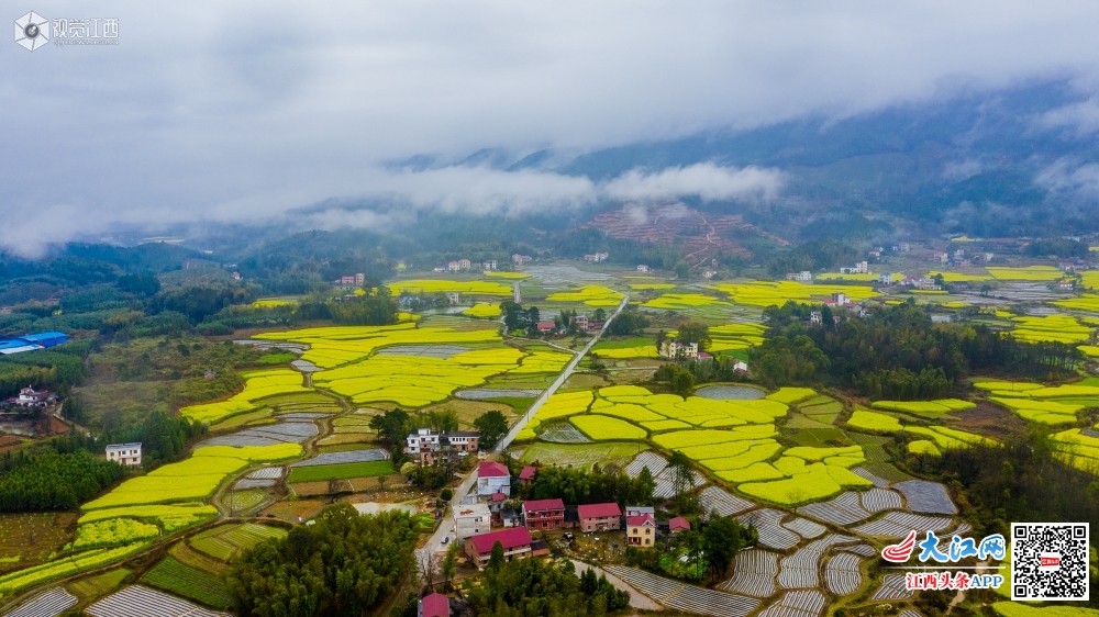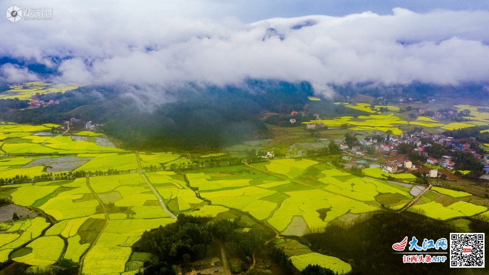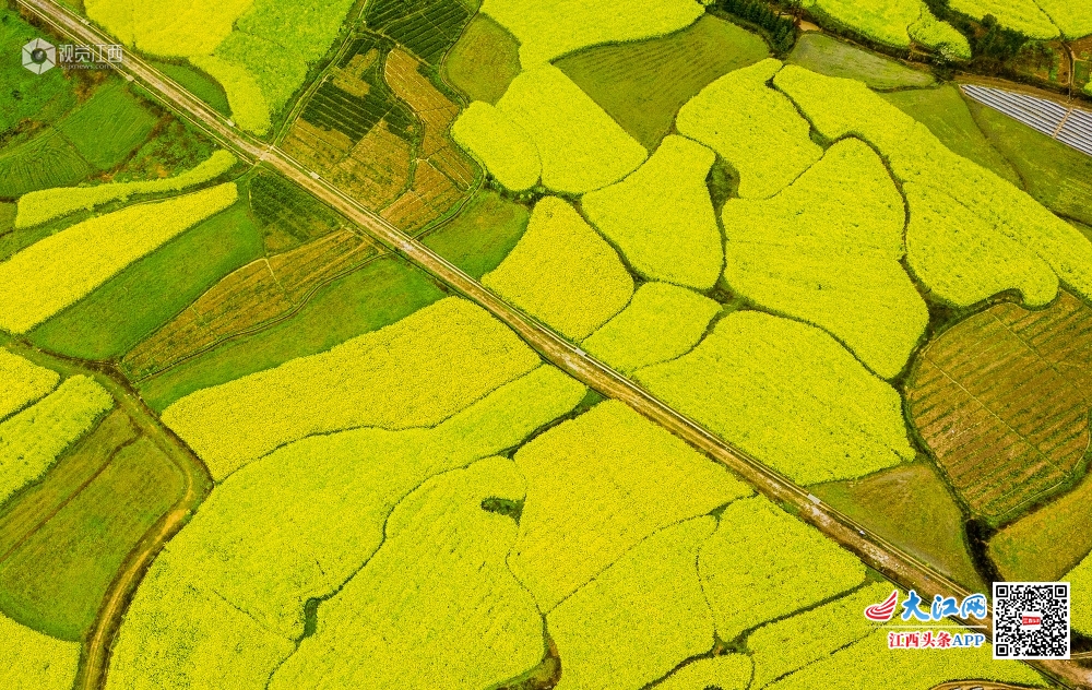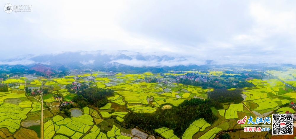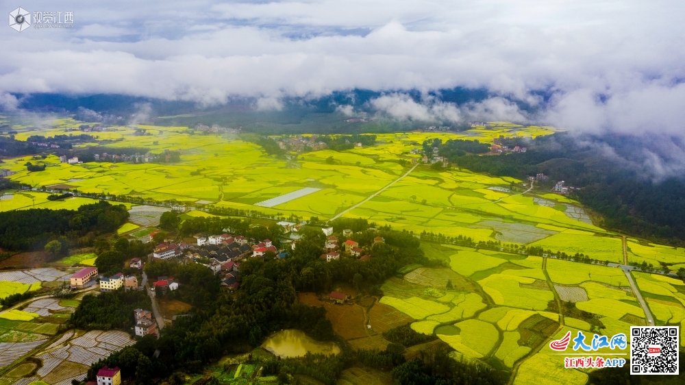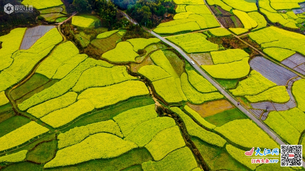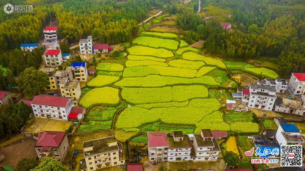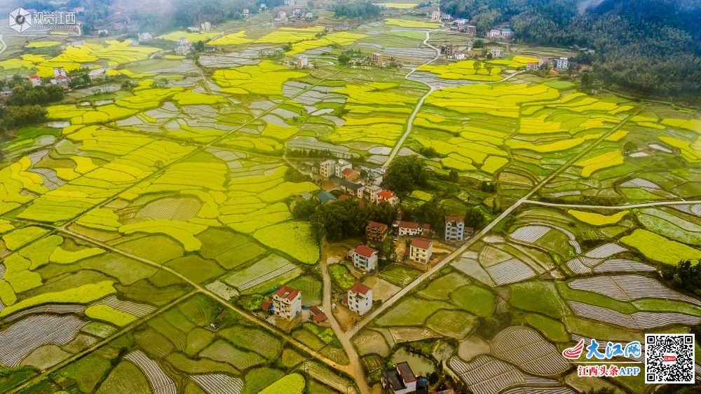 俯瞰安福洋溪:万亩油菜花海 春日风光尽收眼底