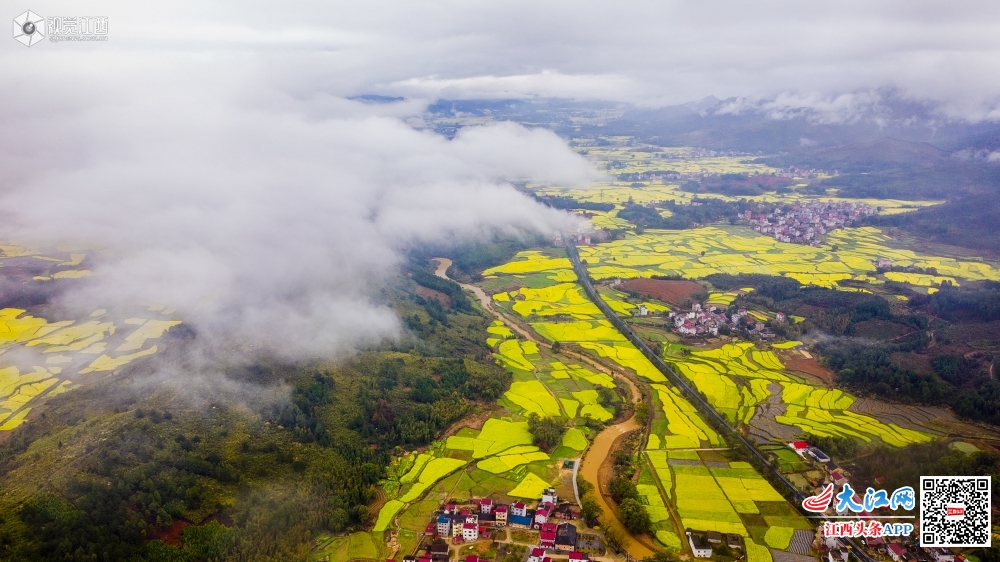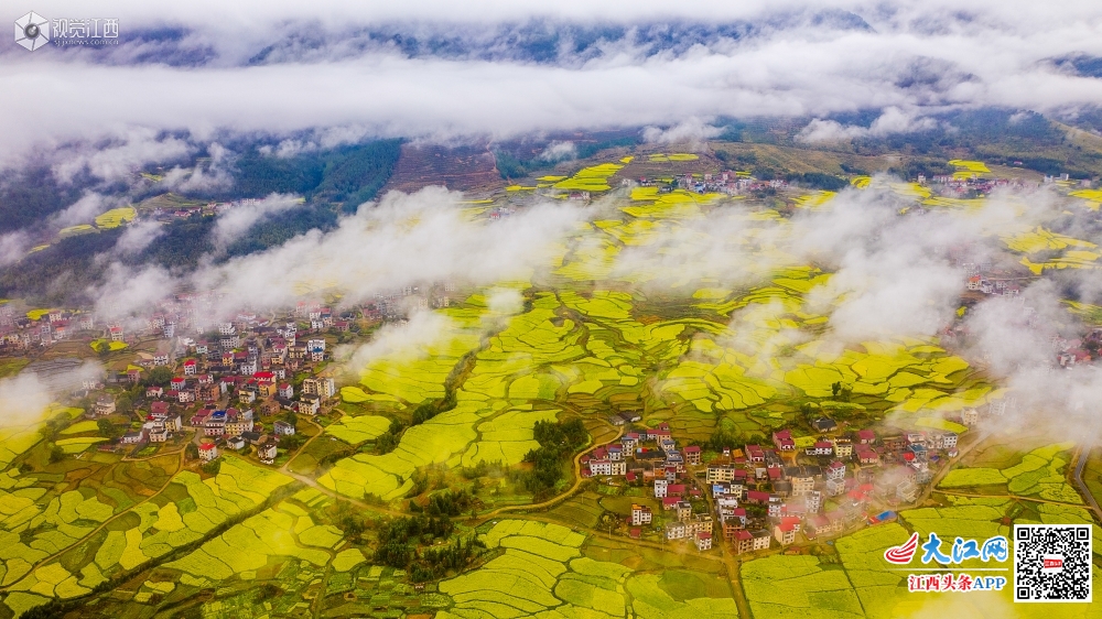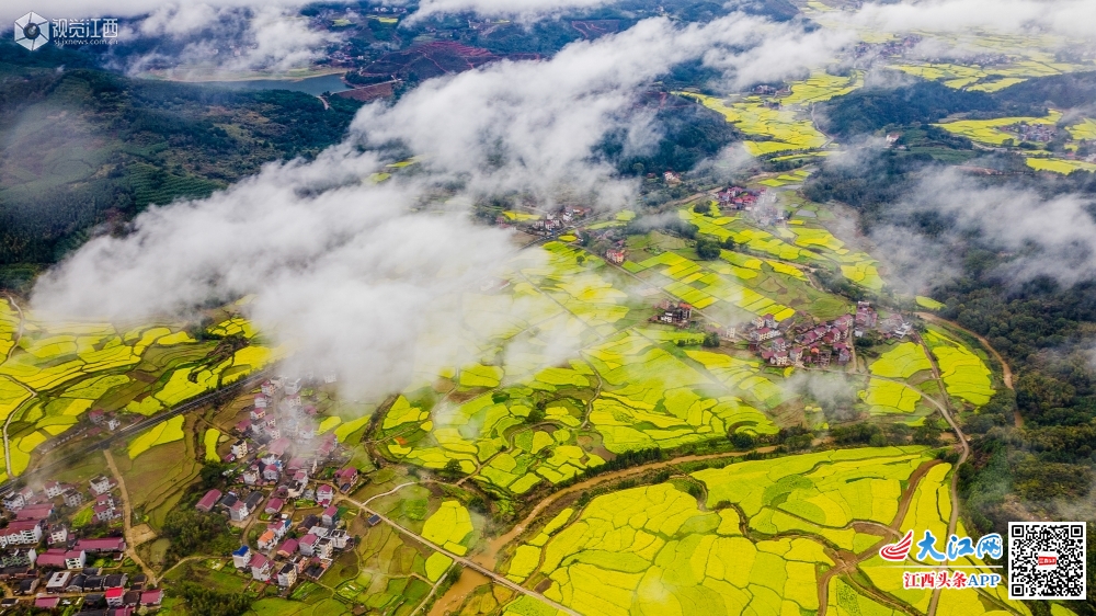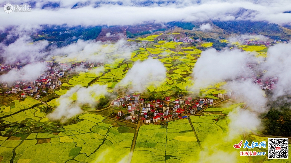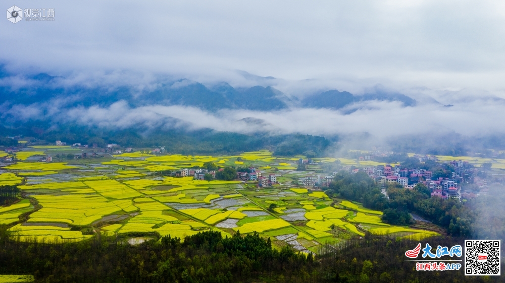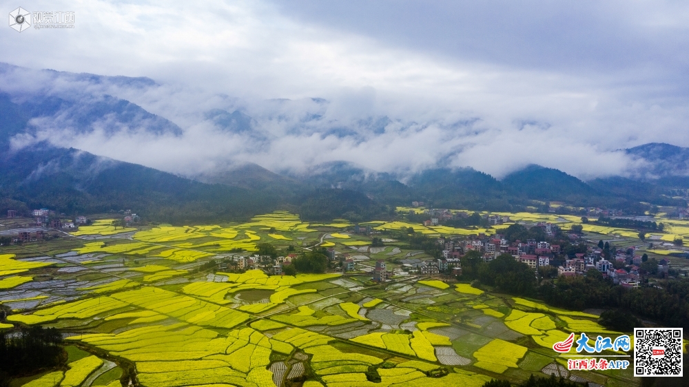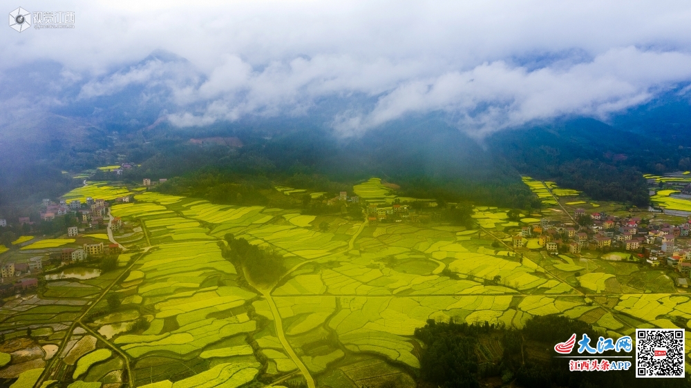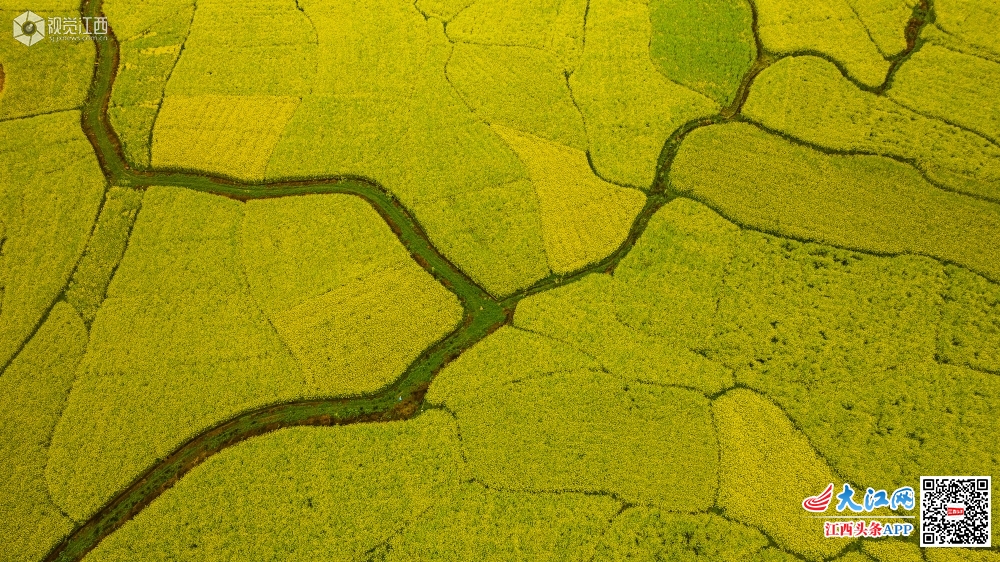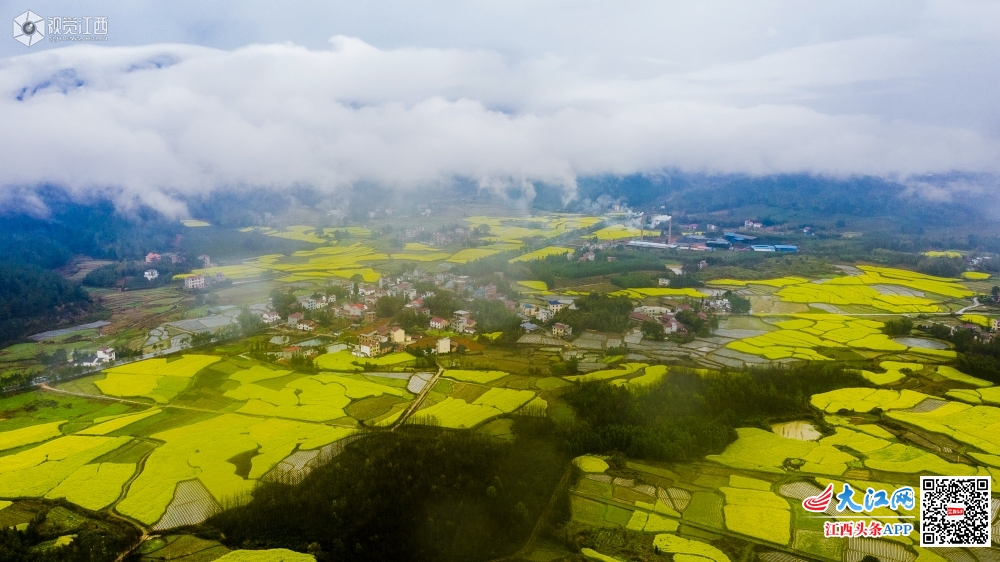 俯瞰安福洋溪:万亩油菜花海 春日风光尽收眼底