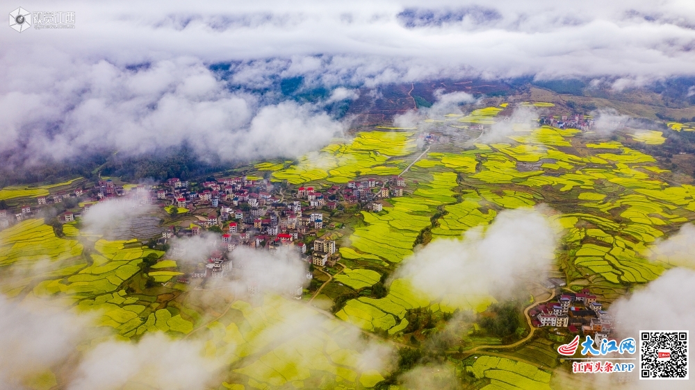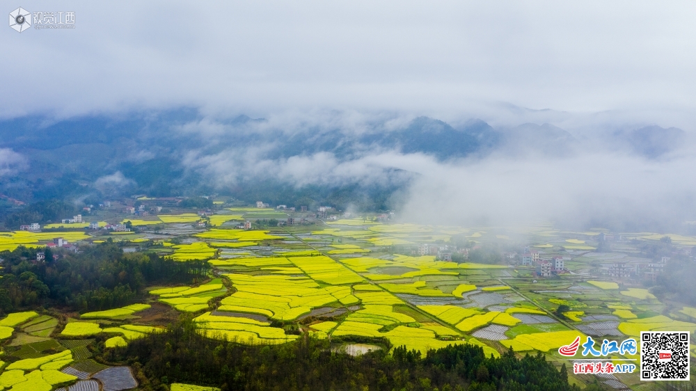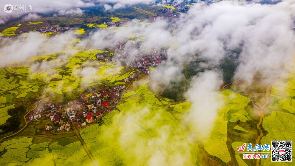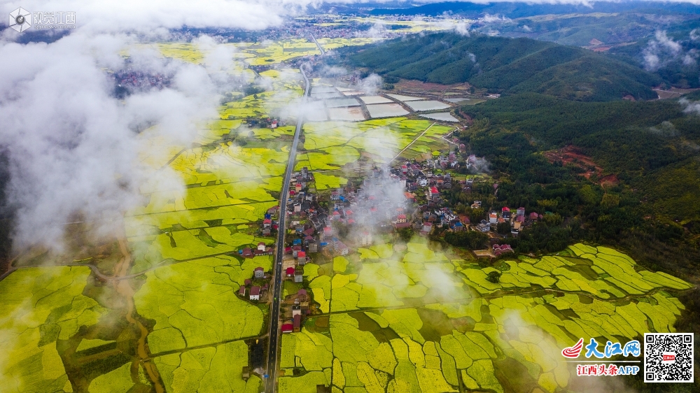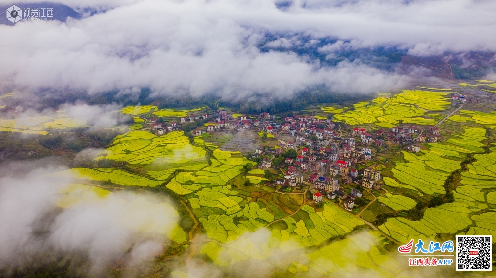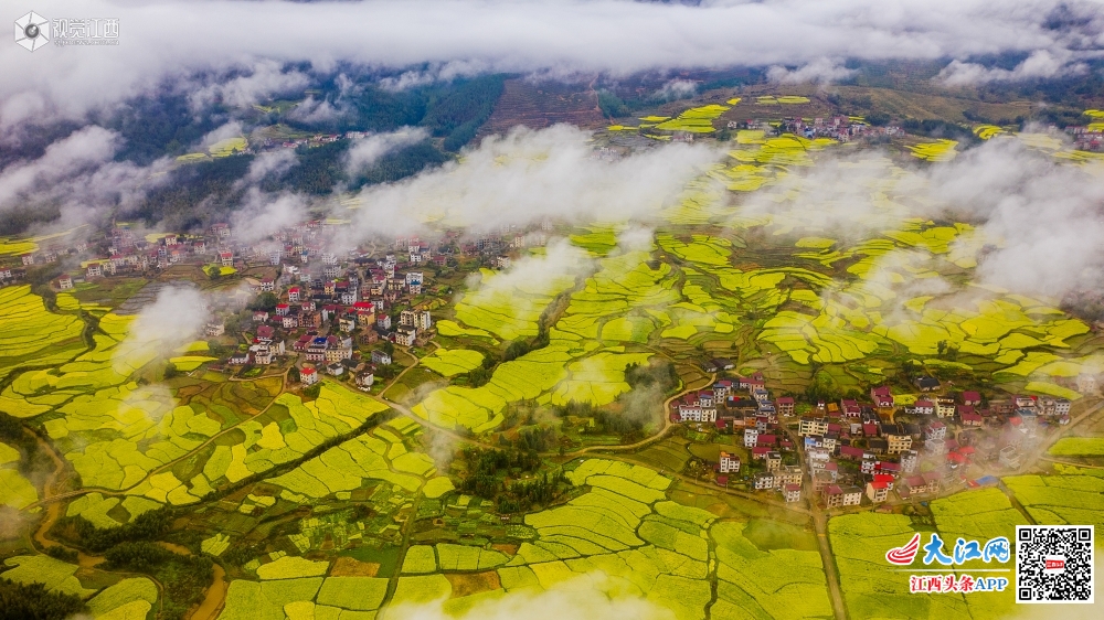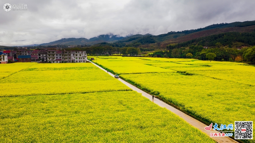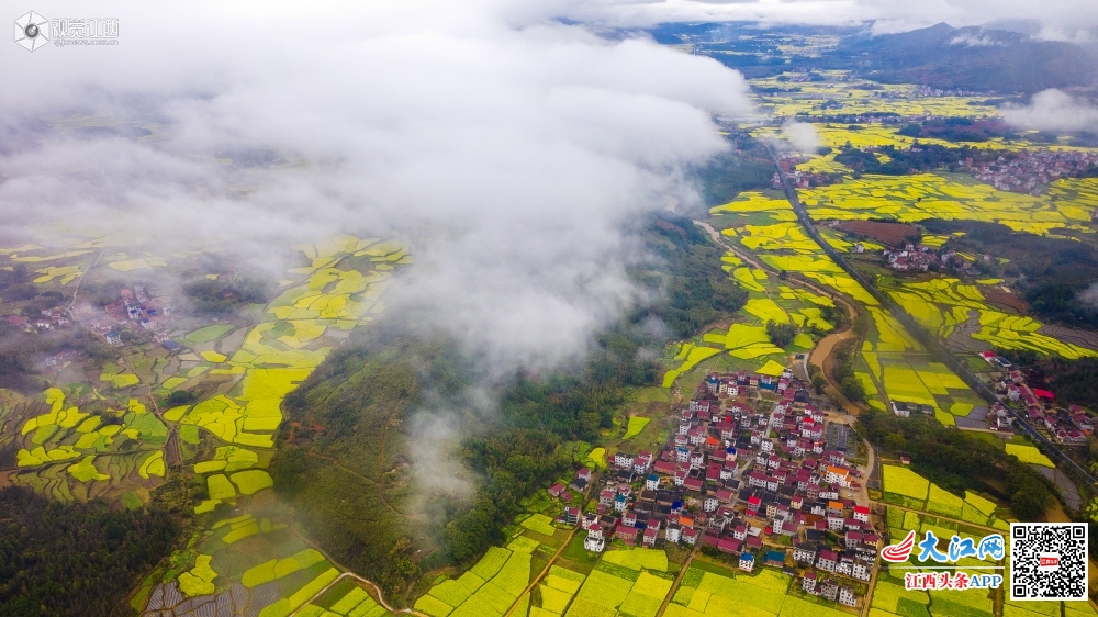 俯瞰安福洋溪:万亩油菜花海 春日风光尽收眼底