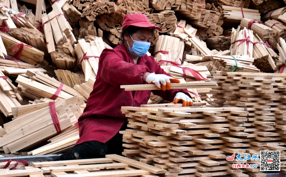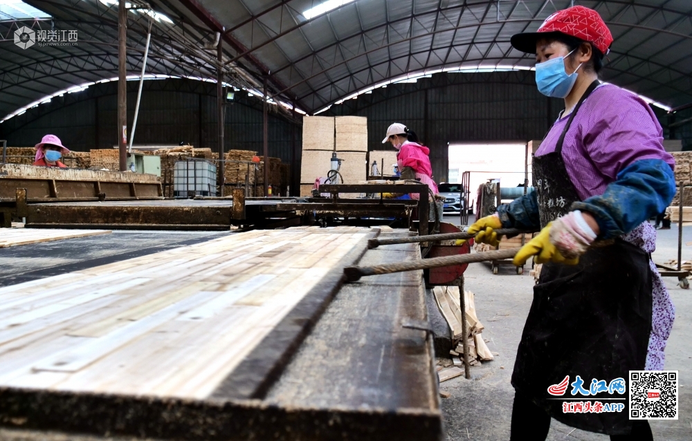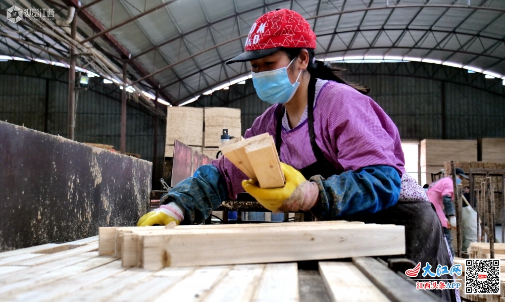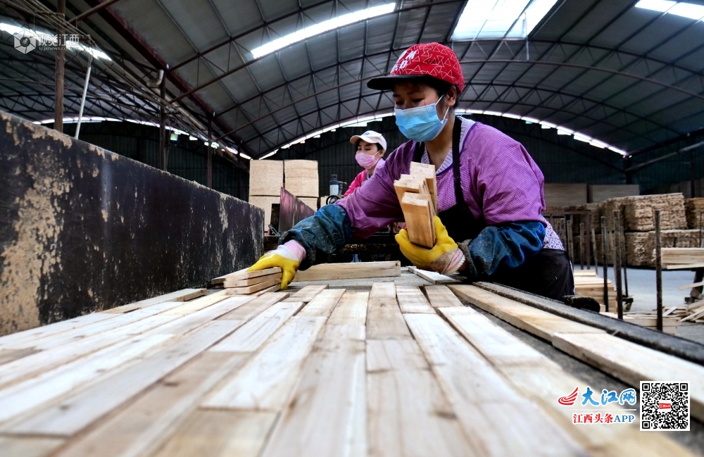2020年3月11日,在江西省吉安市永丰县古县镇恒宏木业扶贫车间,工人们正在加紧赶制订单。