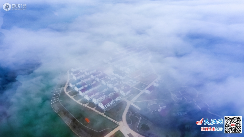 3月11日,受降雨天气和昼夜温差加大影响,雨过天晴的江西省峡江县水利枢纽风景区上游巴邱镇蒋沙移民新村,迎来如梦似幻的云海景观,把乡村妆点的格外美丽。飘逸的云海一团团地簇拥着,在山海之间、乡村之上,或浓或淡,宛若仙境。