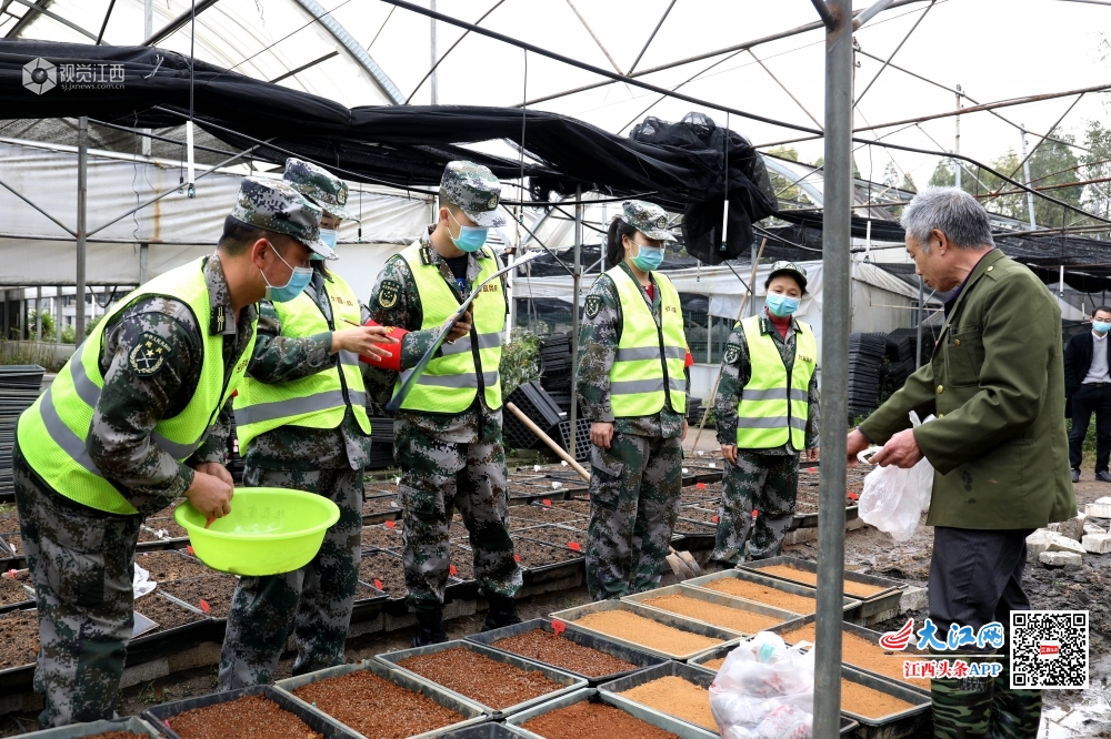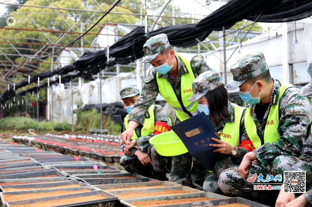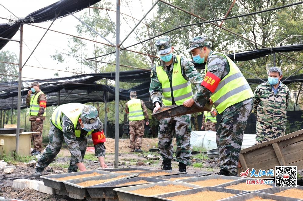 3月13日,江西省分宜县钤西街道武装部组织12名基干民兵来到中国亚林中心林科院油茶苗基地,帮助播种育秧、幼苗装运等,助力春季苗木生产。