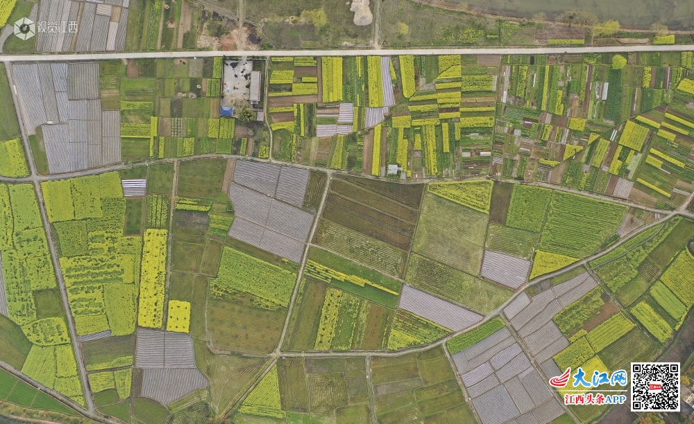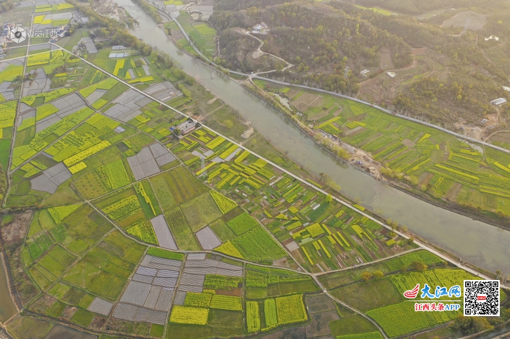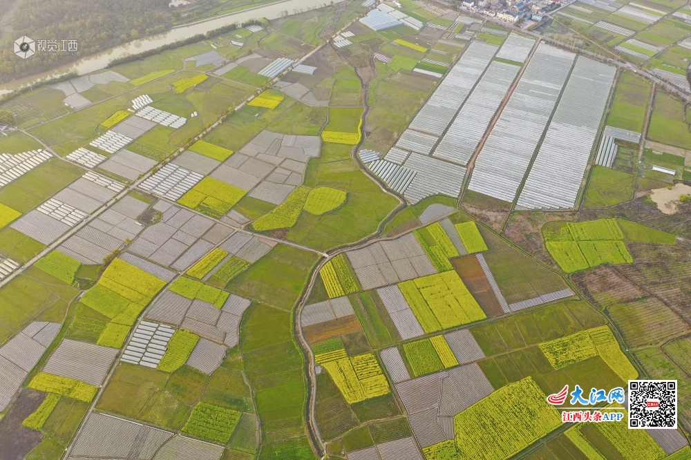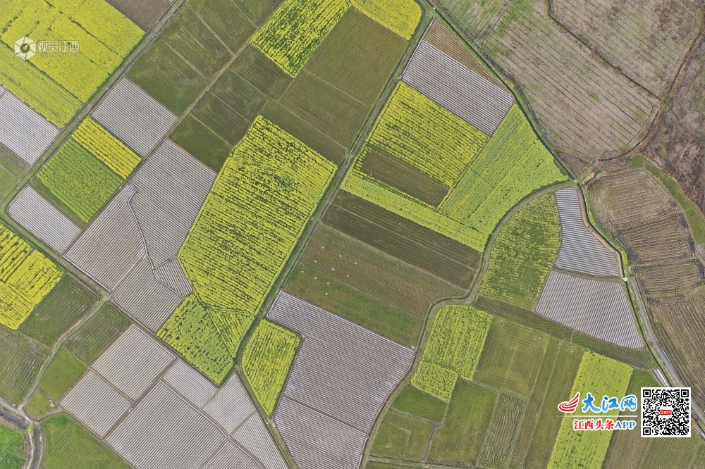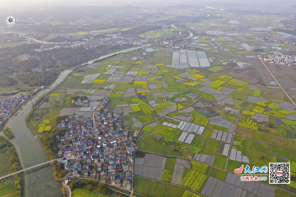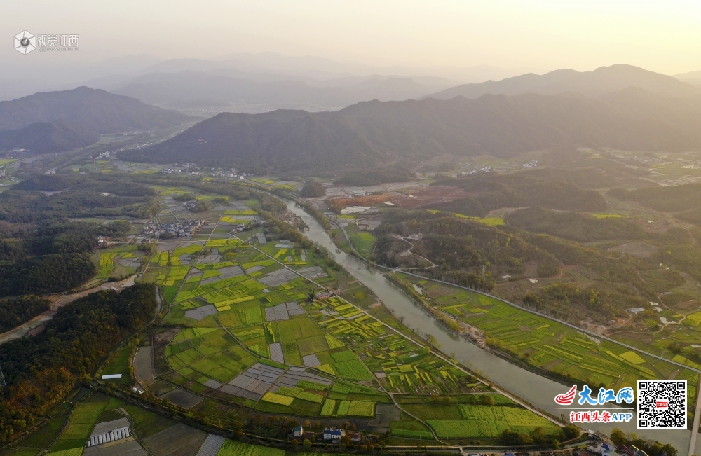 2020年3月14日,航拍江西省上饶市铅山县汪二镇火田村落日,油菜花田和民居在落日余晖下,显得格外迷人。随着气温逐渐升高,铅山境内的油菜花竞相绽放,油菜花田、粉墙黛瓦的民居与远处的山峦,在落日余晖映照下,一幅美丽的春光画卷展现在眼前。