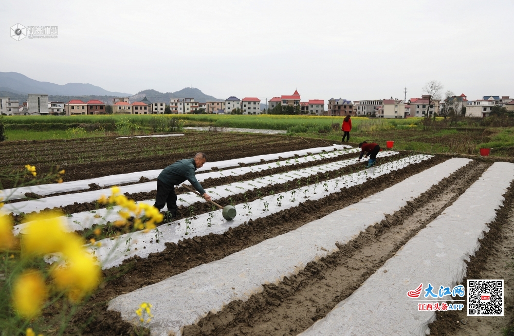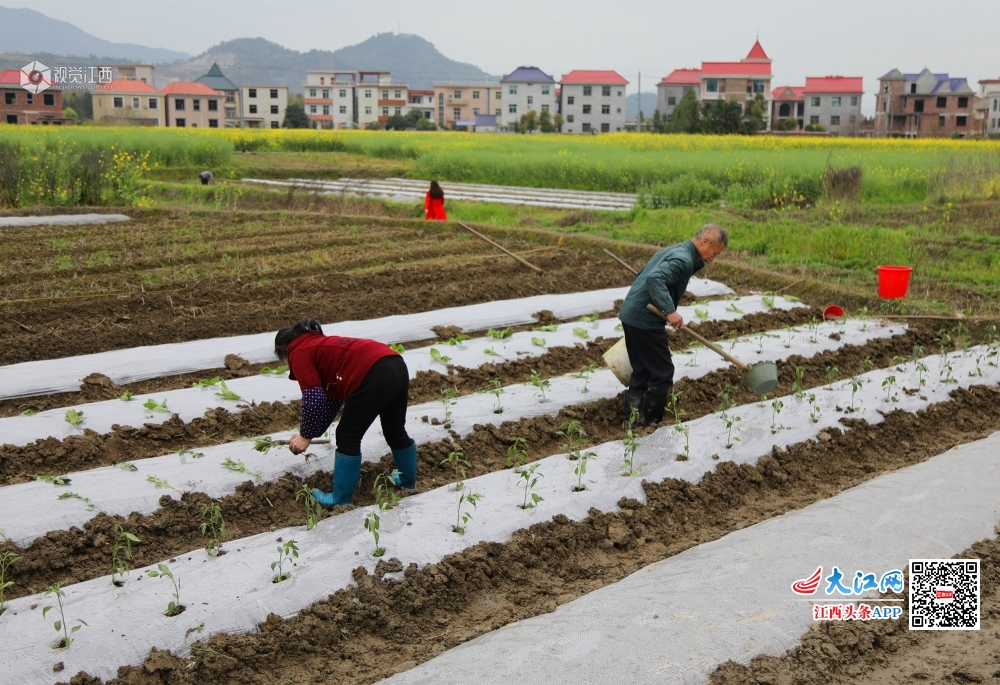 3月16日,江西省莲花县琴亭镇金家村村民正在责任田里栽种辣椒苗。进入3月份,莲花县农民不误农时,抢抓有利天气整地培土,栽种菜苗,力争增产增收。