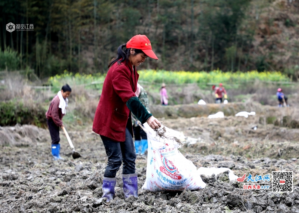 2020年3月18日,在江西省吉安市永丰县坑田镇模源村艾叶种植基地,当地农民正抢抓农时种植艾叶,一派忙碌的景象。