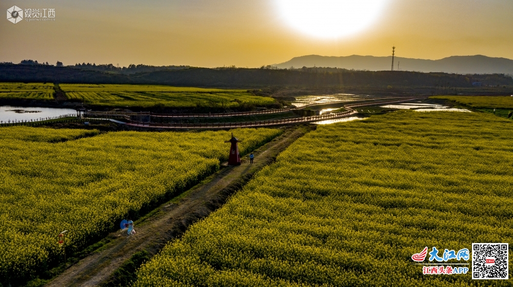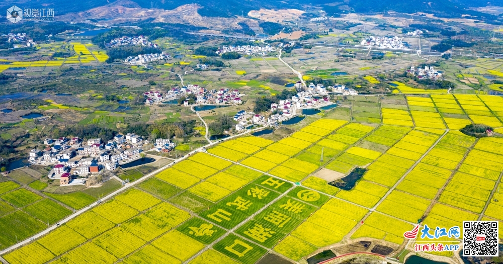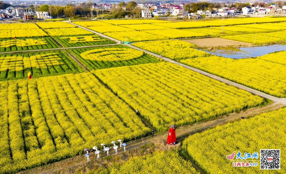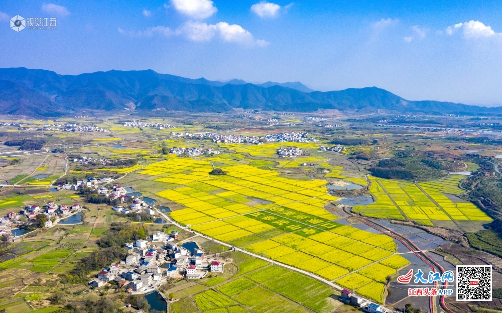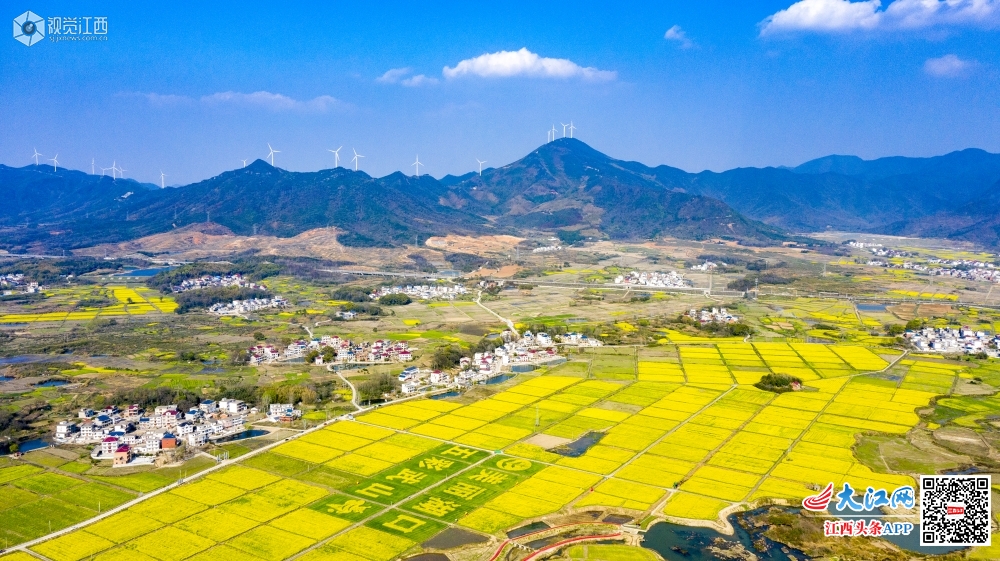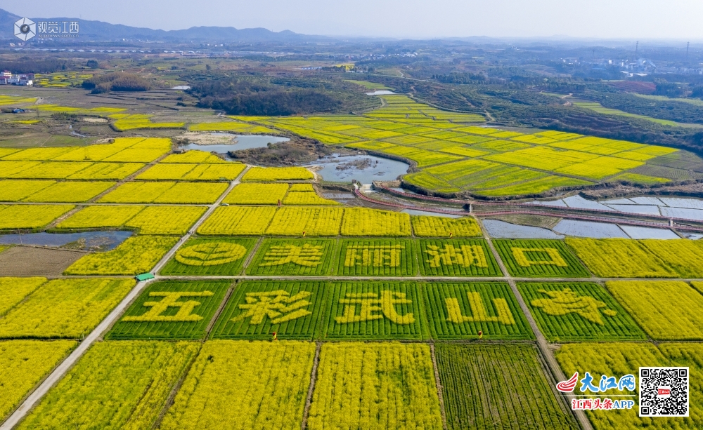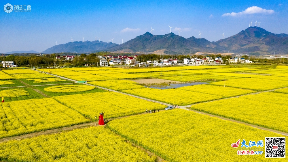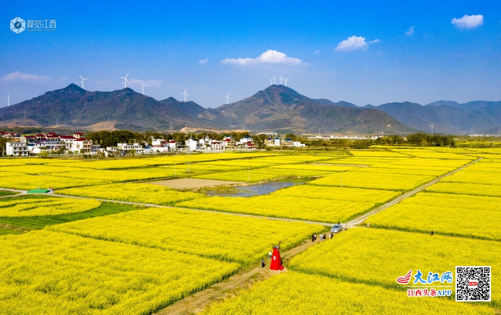 2020年3月18日,江西省九江市湖口县武山镇千亩连片的油菜花竞相怒放,构成一幅最美乡村春景画图。蓝天白云、山峦叠嶂、亭台村舍与满目金黄的油菜花相得益彰,迎着春风,徜徉其间,宛如人间仙境,美不胜收。