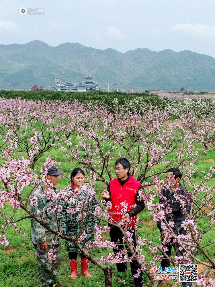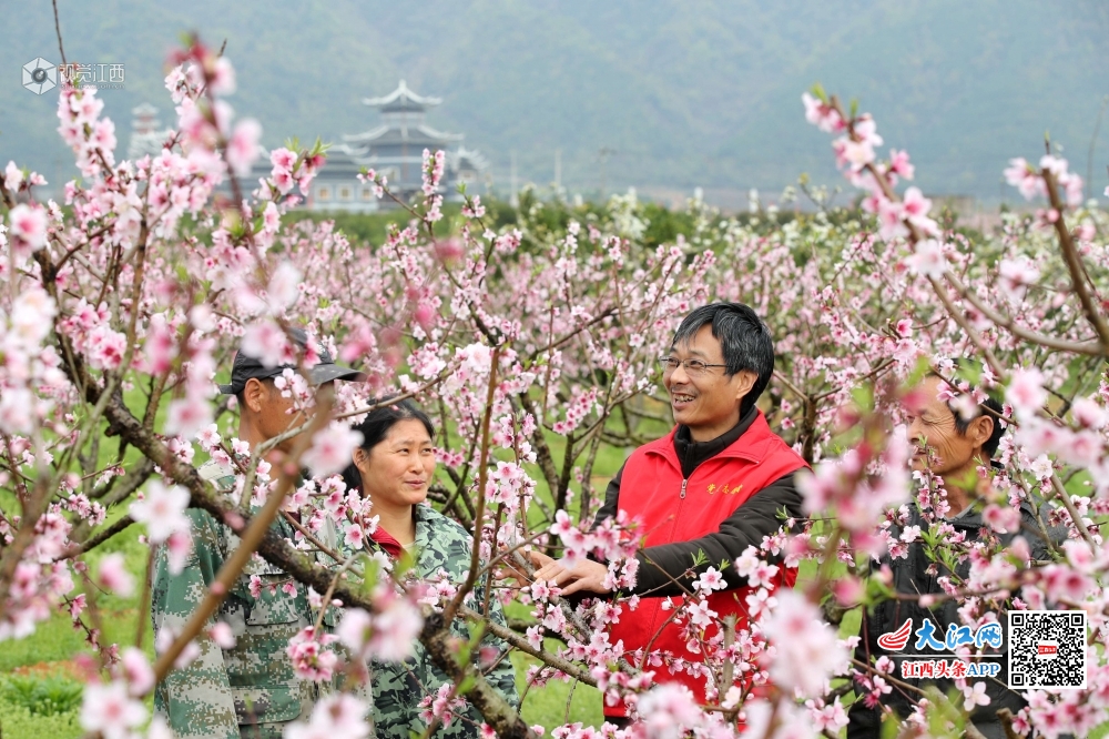 2020年3月19日,在江西省吉安市峡江县金坪民族乡新民村,科技特派员在向村民传授水蜜桃管理技术。