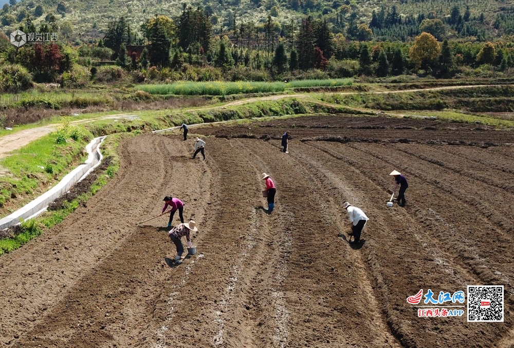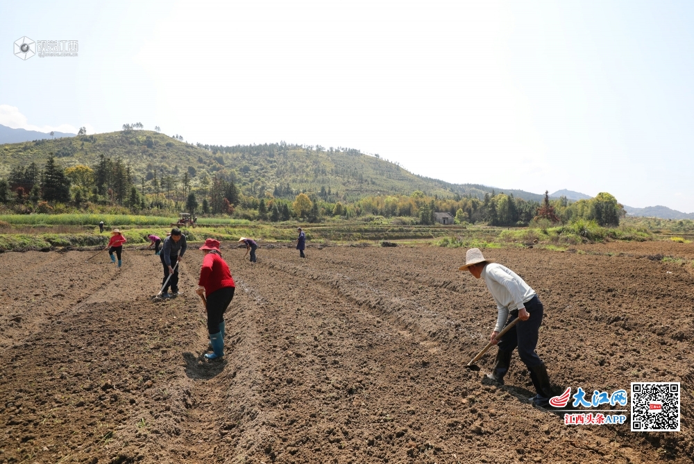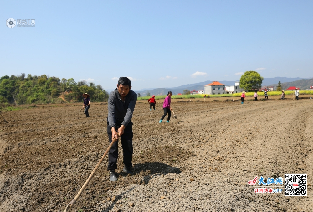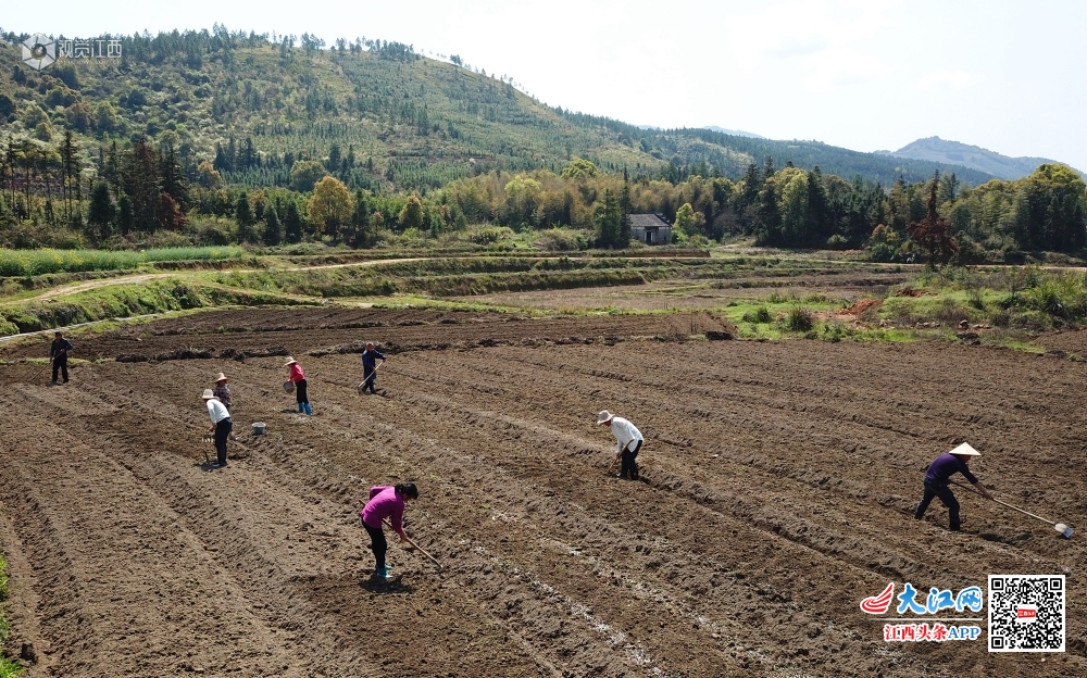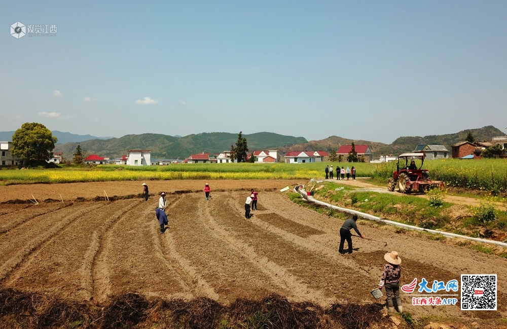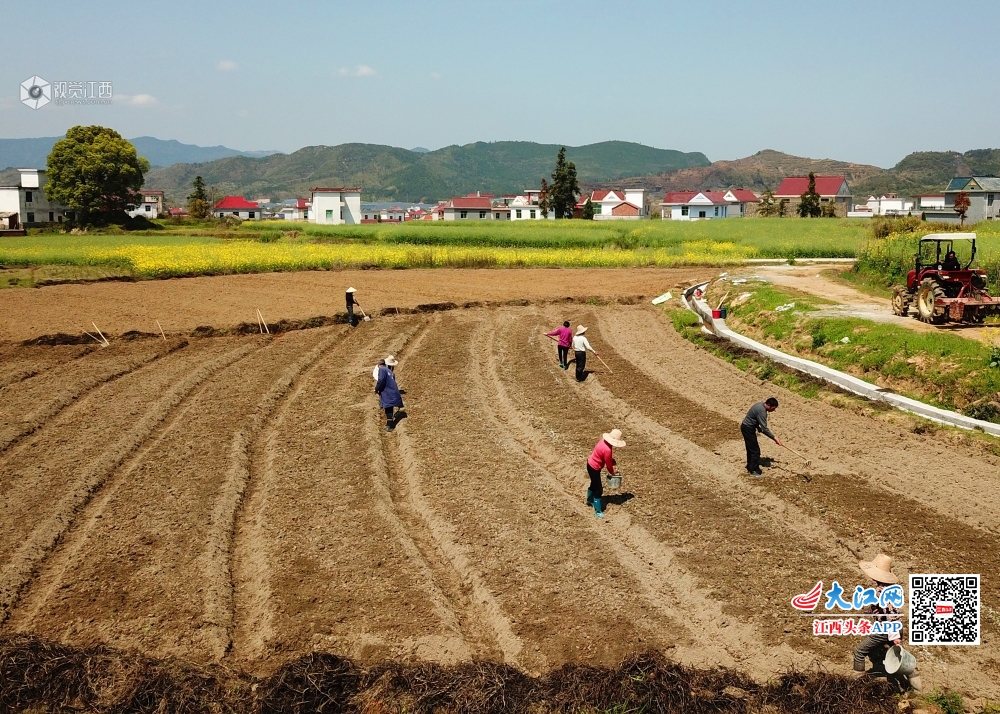 2020年3月20日,江西省莲花县良坊镇下坊村村民正在扶贫基地整地、施肥,栽种西瓜苗。进入3月份,莲花县农民不误农时,抢抓有利天气整地培土,栽种秧苗,力争增产增收。