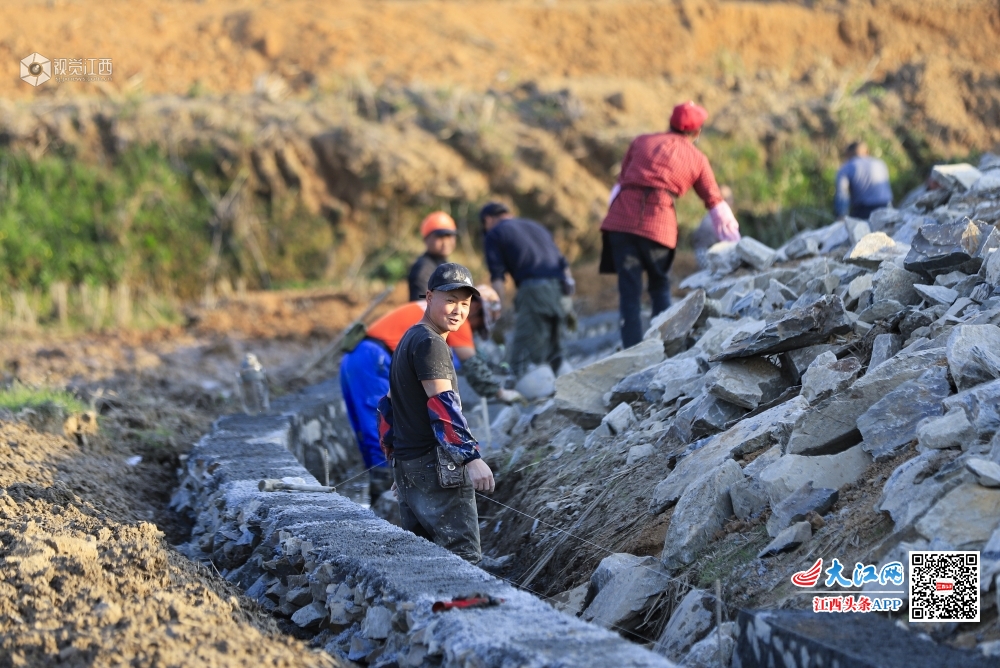 2020年3月20日,江西省九江市湖口县武山镇鄱阳湖口田园综合体项目正在加紧修建排水渠。连日来,当地在全力做好疫情防控的同时,抢抓春季晴好天气,有序推进重大项目建设,确保疫情防控和项目建设两不误。