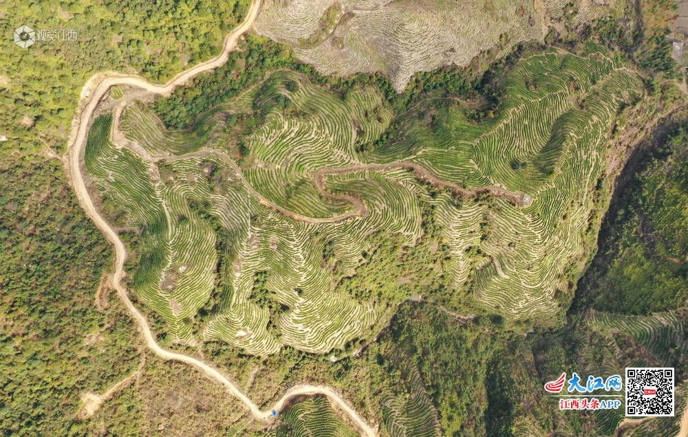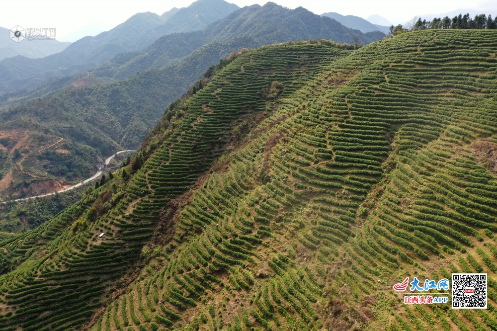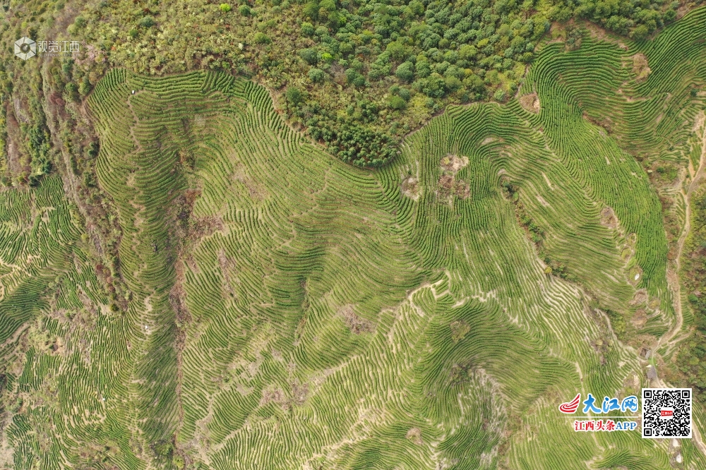 2020年3月20日,航拍江西省上饶市铅山县紫溪乡红星村茶山梯田,连绵千亩的茶山梯田尽收眼底,犹如大地“指纹”,山峦像是铺上了厚厚的绿绒毯,蔚为壮观。