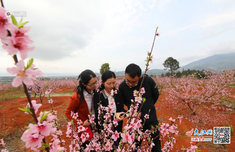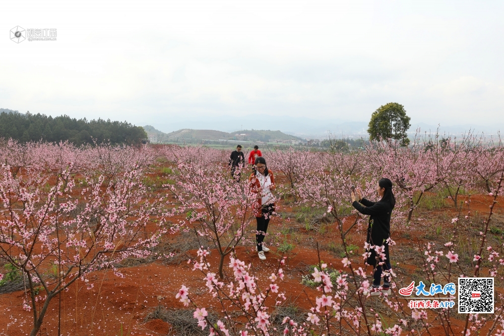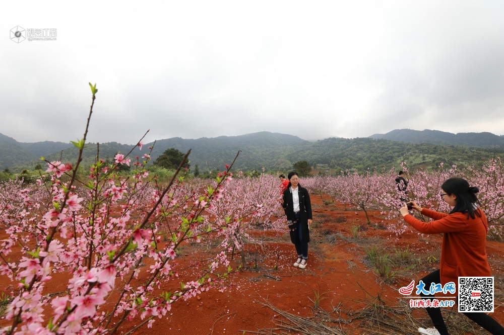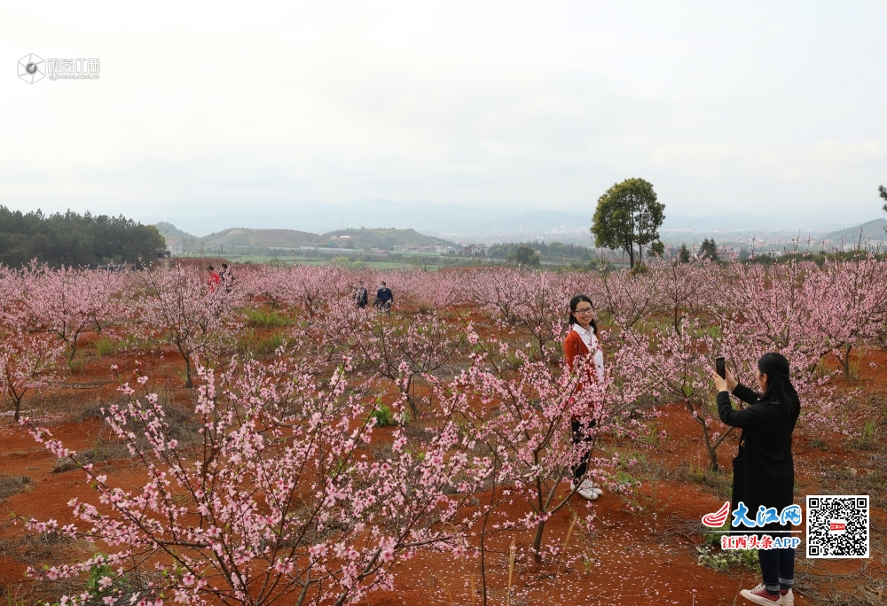 3月24日,江西省莲花县升坊镇江口村的黄桃基地,近千亩桃花竞相绽放,漫山遍野的桃花招蜂引蝶,美不胜收,吸引不少游客前来踏春赏景。