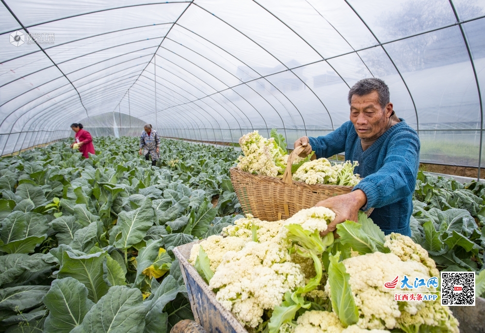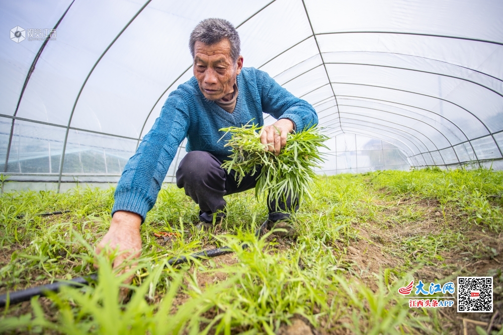 2020年4月1日,江西省九江市湖口县城山镇团墩村产业扶贫基地生机勃勃,农户正在采摘蔬菜,向当地非公企业供货。为进一步拓宽产品销售渠道,湖口县委统战部和湖口县工商联倡导发动当地园区非公企业积极参与消费扶贫,助力贫困村甩掉“贫困帽”、挖掉穷根。
