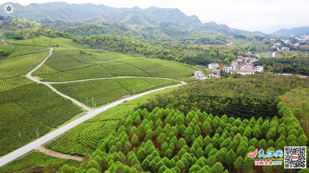 4月1日,无人机航拍下的江西莲花县坊楼镇红源村,一条柏油路穿村而过,美丽的茶园分布在进村道路两侧,红顶白墙的民居散落在长满绿树的山坡,薄薄的雾气弥漫在远处的山峦上,整个村庄就像一幅美丽的山水田园画。近年来,莲花县依托生态优势,把农业产业与生态旅游结合起来,在增加了农民收入的同时也扮靓了田园乡村。