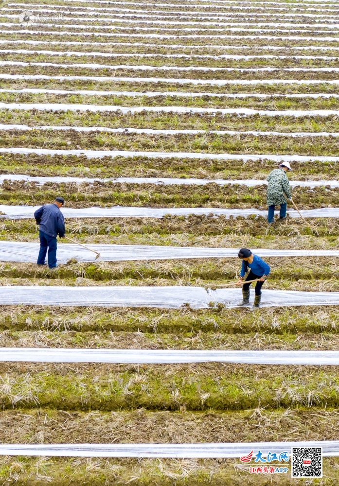 2020年4月2日,江西省九江市湖口县马影镇农户李支员正在田间地头铺垫地膜,为栽种西瓜苗作准备。眼下天气逐渐回暖,种粮大户李支员抢抓有利天气,及时开展春管春种作业,不仅耕种了200余亩早稻田,还栽种了莲藕、西瓜等农作物,确保不误农时、农业丰产增收。