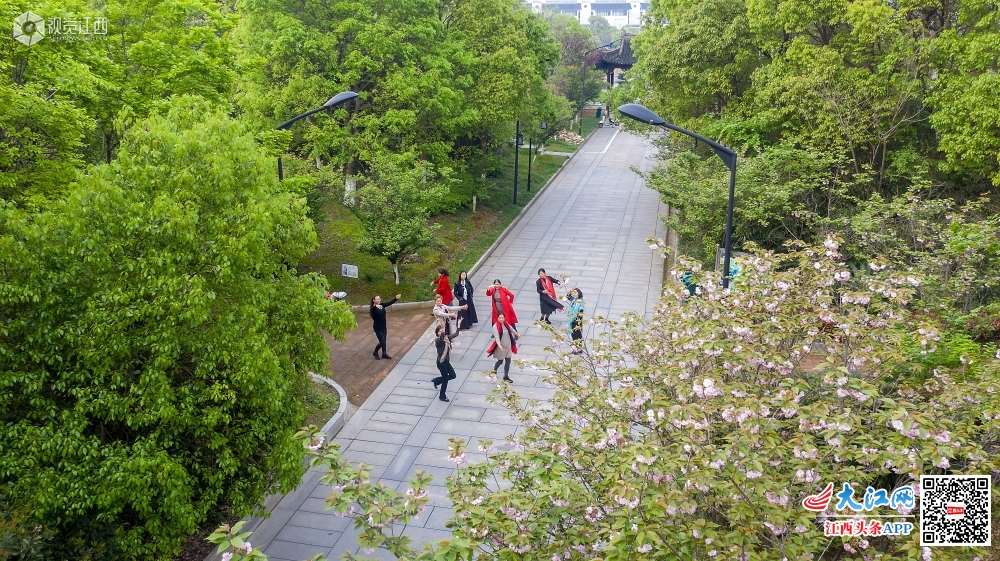 2020年4月6日,清明时节,天气回暖,八大山人梅湖景区空间宽敞,花团锦簇,鸟飞鱼跃,引无数游人踏青。
