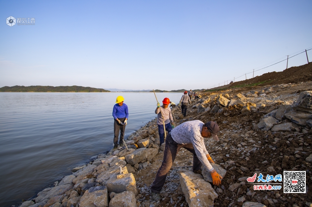 4月7日,鄱阳湖区单退圩堤湖口县南北港圩加固整治工程项目施工现场一派繁忙景象,工人正在全力推进项目建设。