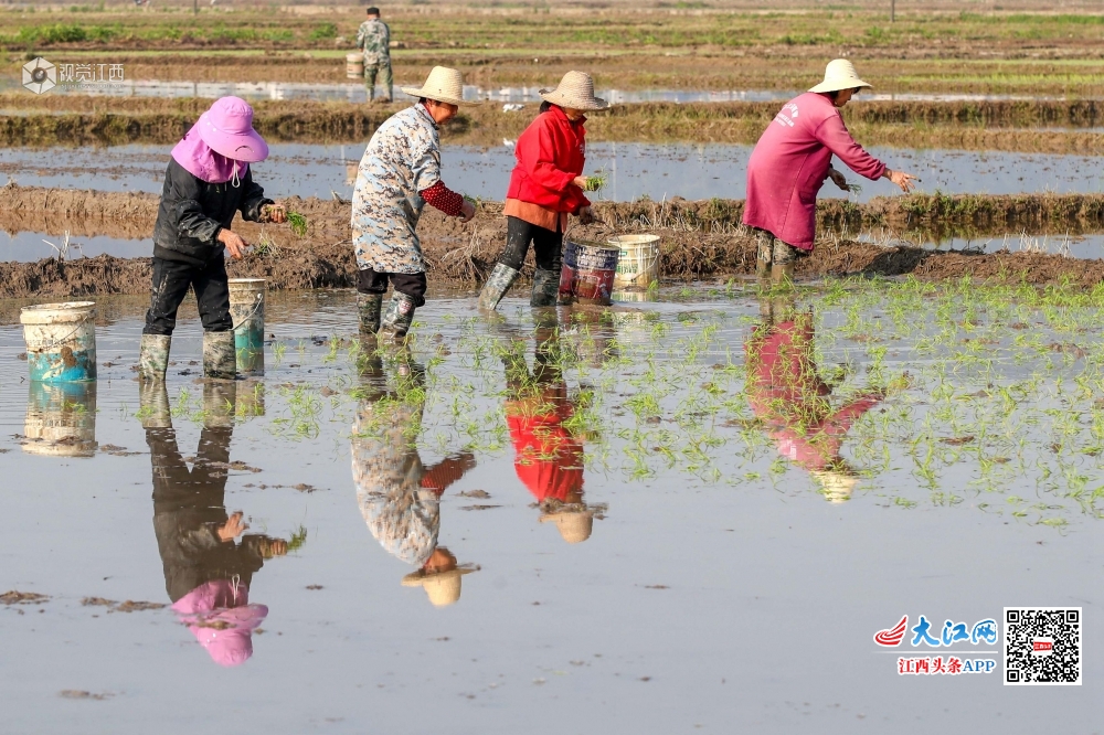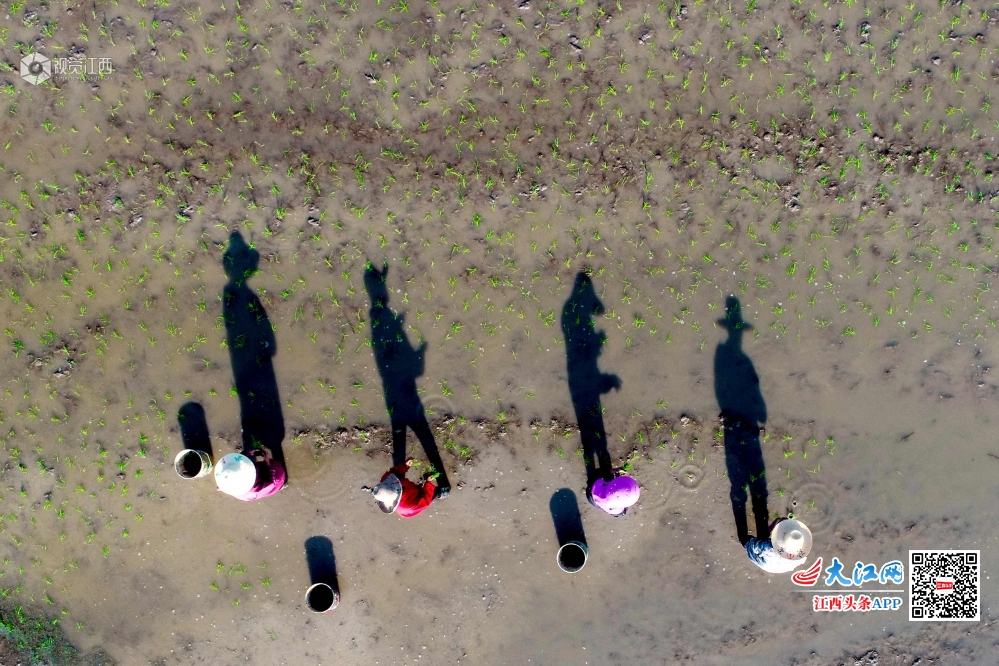 4月8日,江西省峡江县水边镇义桥村的村民在田间抛秧。今年以来,峡江县统筹谋划抓好春耕生产,积极消除新冠肺炎疫情对粮食生产影响,采取扩大水稻种植面积、选用优质水稻良种和推广农业新技术等措施,稳定粮食播种面积和产量,确保粮食安全。目前,该县25万余亩早稻全面开始春插。