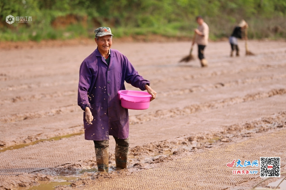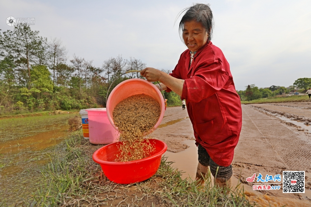 2020年4月8日,村民正在江西省吉安市万安县罗塘乡奇富村村级育秧基地育秧。春日时节,当地农民抢抓有利时节和晴好天气育秧,田间地头一片忙碌。为稳定粮食生产,万安县罗塘乡奇富村流转土地实行集中育秧,满足100多亩撂荒地的用秧需求,让撂荒土地重新焕发生机。