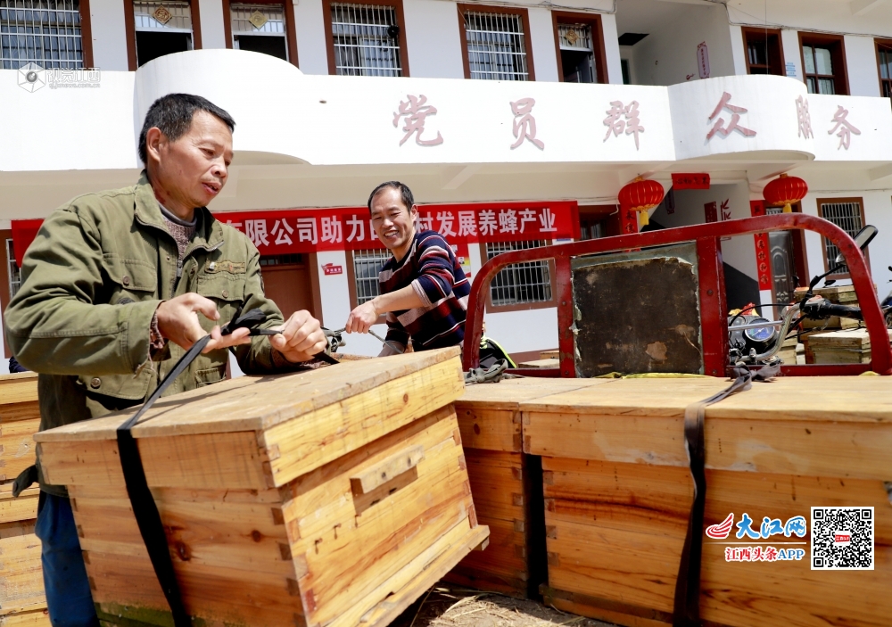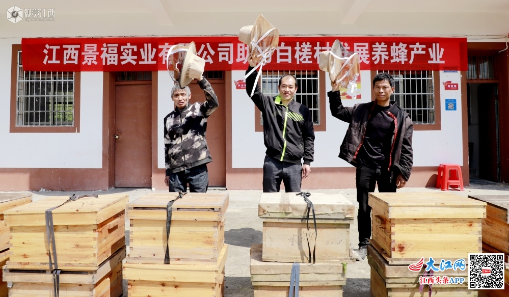 4月8日,爱心企业江西景福实业有限公司来到江西省宜黄县二都镇白槎村,将130箱蜜蜂和部分养蜂装备免费赠送给当地贫困户和村民,并派出技术人员驻村指导,帮助他们尽快掌握养蜂、繁殖等技能,发展“甜蜜”产业,实现家门口就业创业。此外,该企业还向村集体捐赠了2万元扶贫资金。