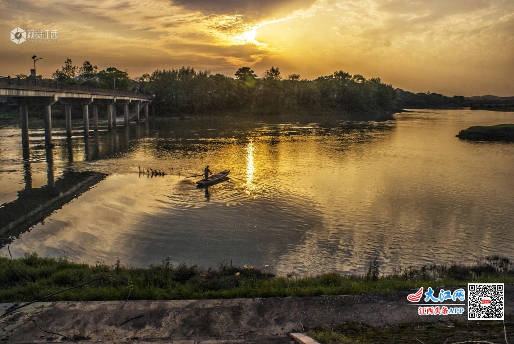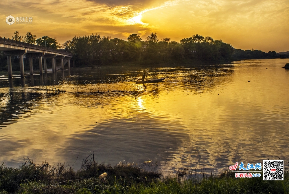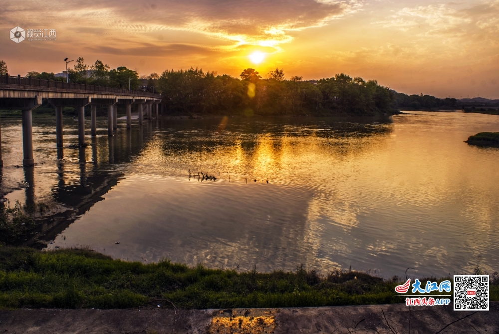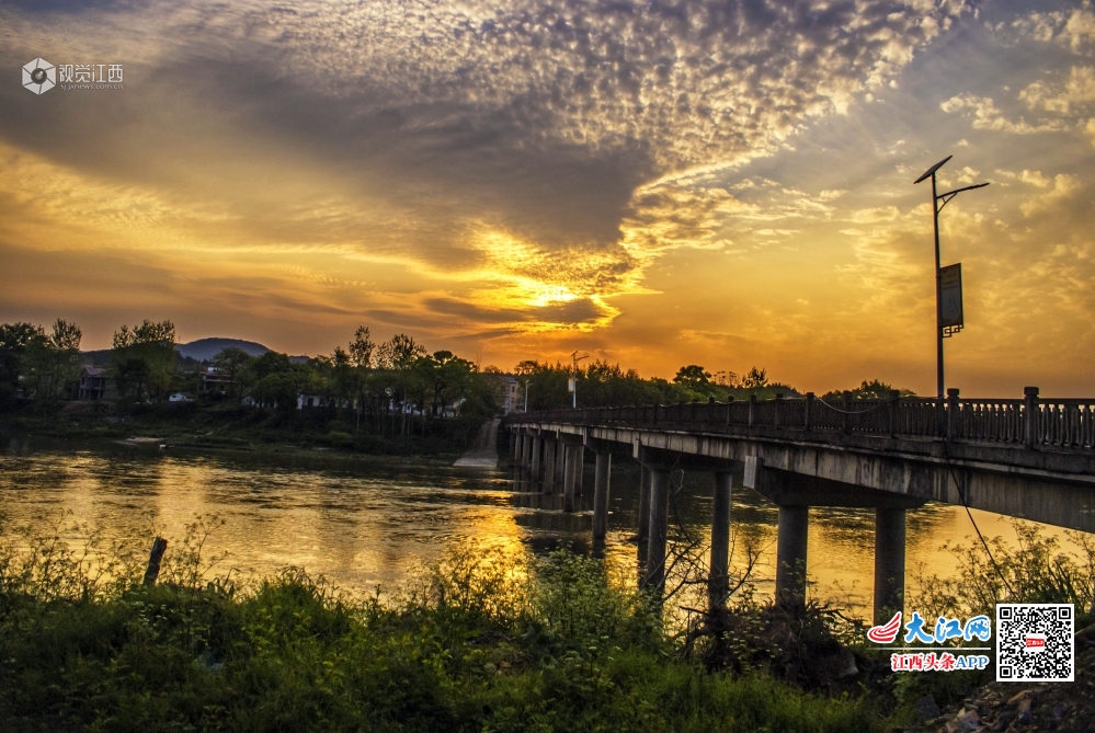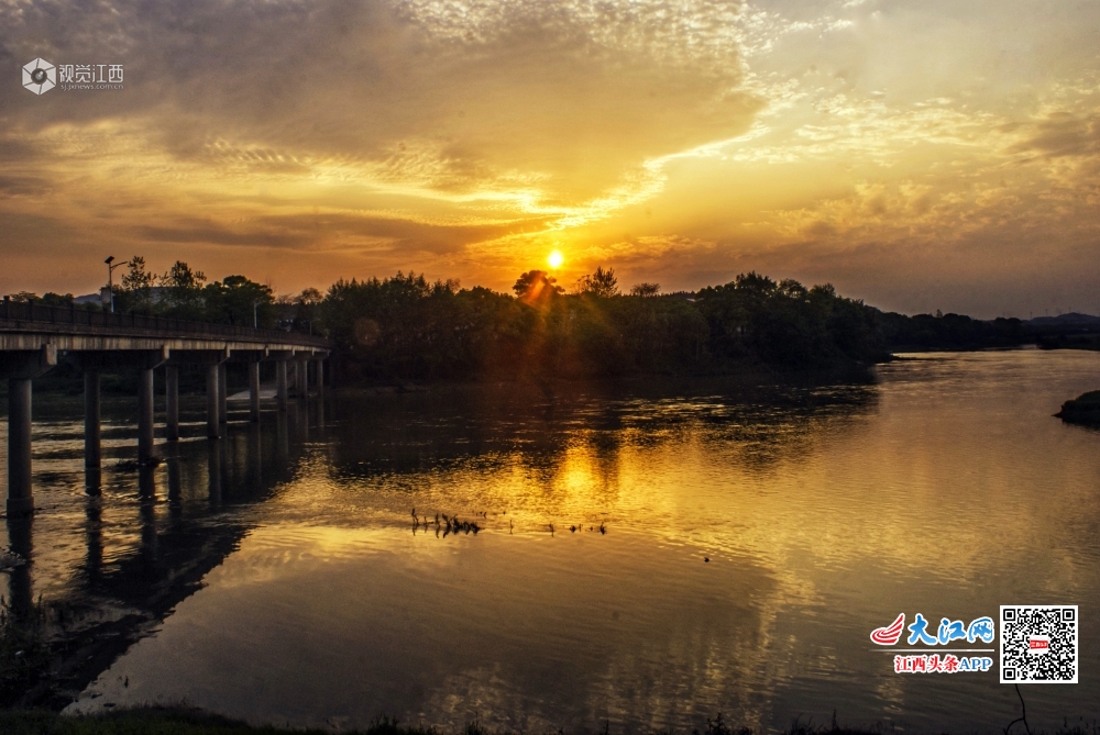 江西分宜:杨溪河畔晚霞诱人