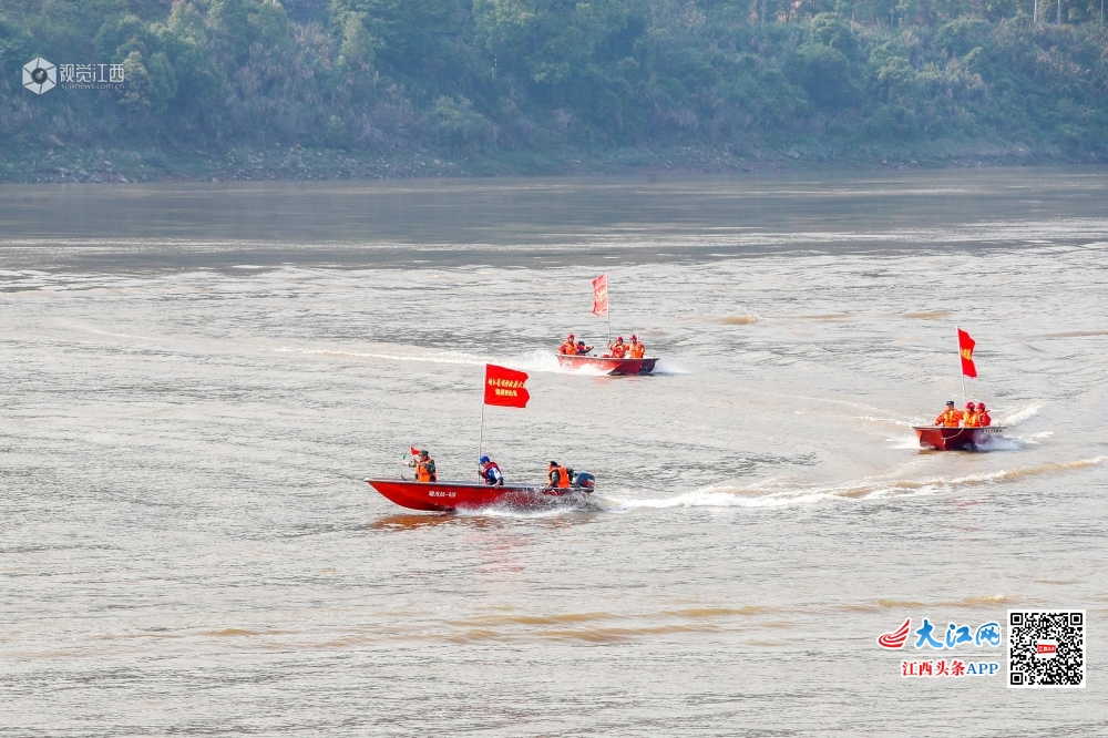 4月10日,在江西省峡江县巴邱镇赣江水域,应急救援队伍在进行冲锋舟编队航行训练。当日,峡江县应急救援队伍举行防汛应急救援实战演练,通过开展冲锋舟离(靠)岸、编队航行、水上救援等训练,让参训队员熟练掌握防汛救援各项技能,提升快速反应和水上综合救援能力。