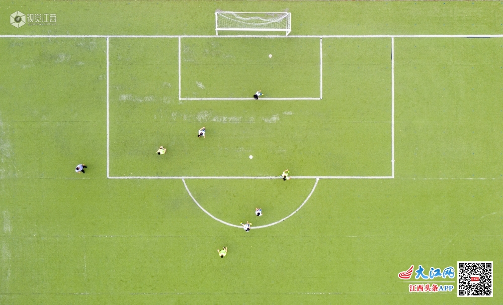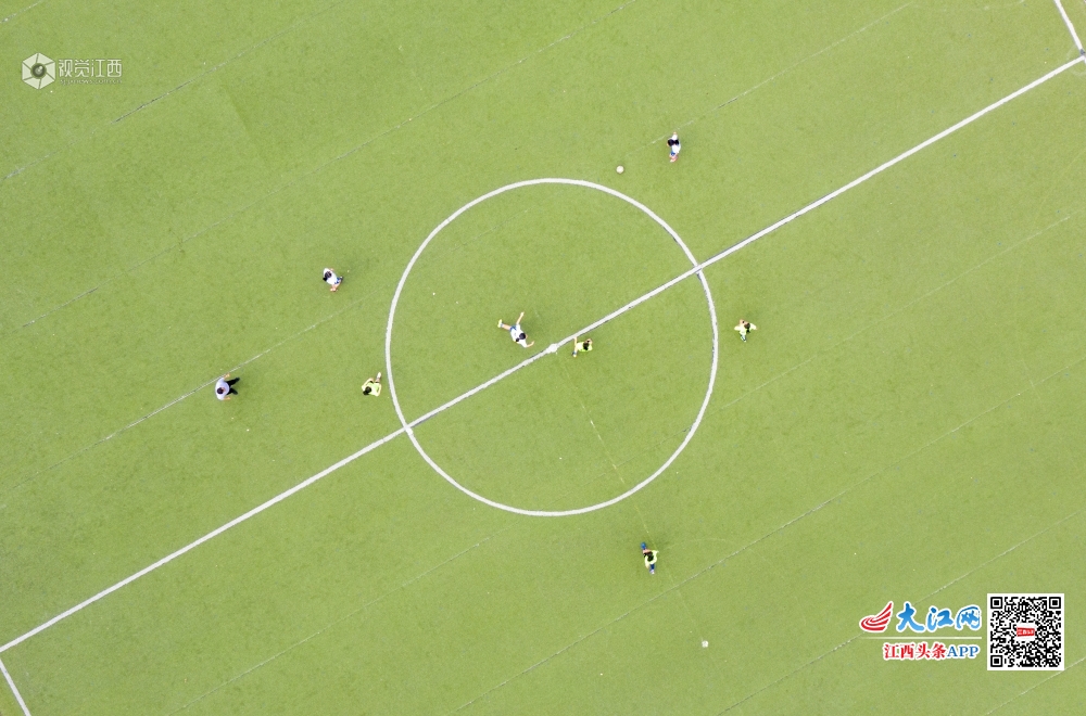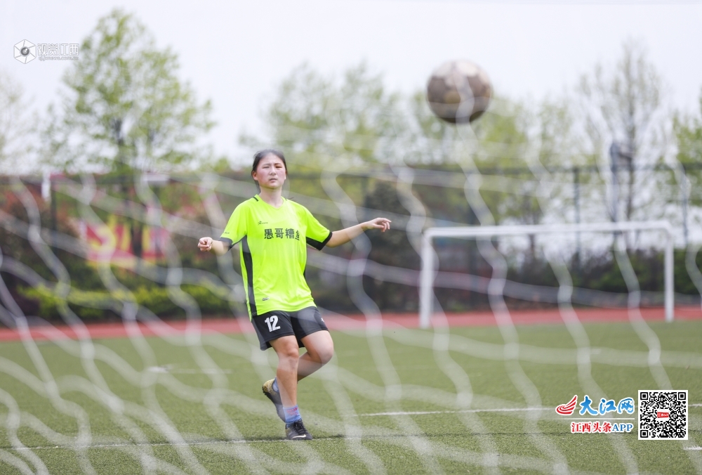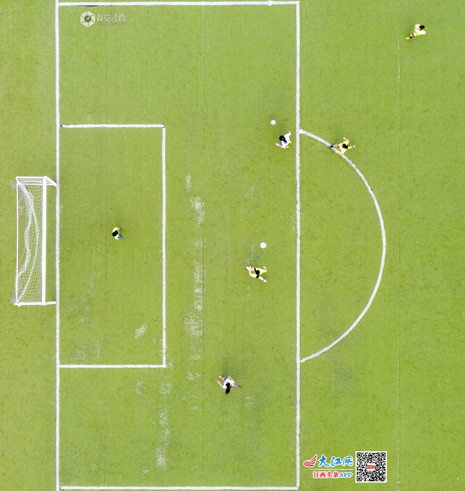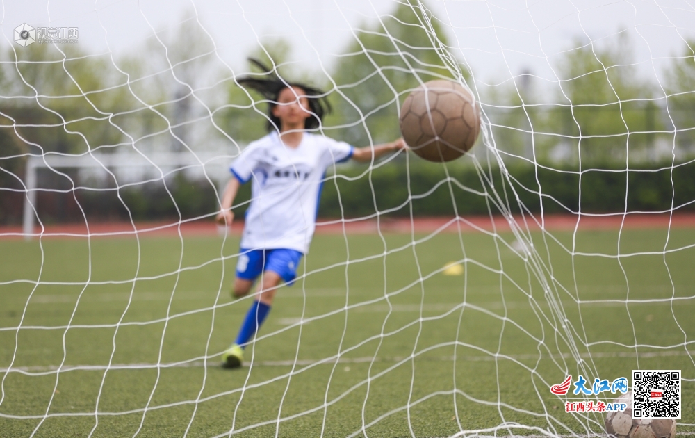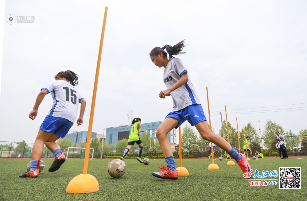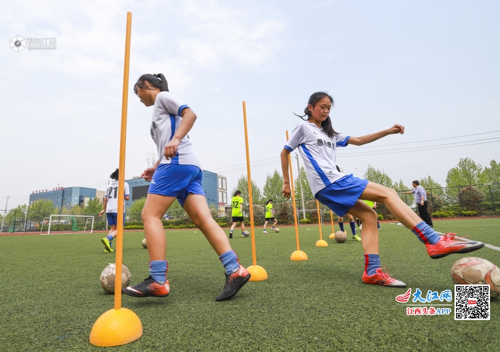 2020年4月10日,江西省九江市湖口县金砂湾学校女子足球队正在进行课余锻炼。