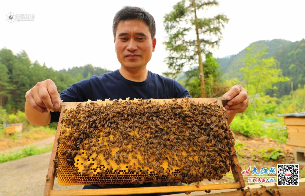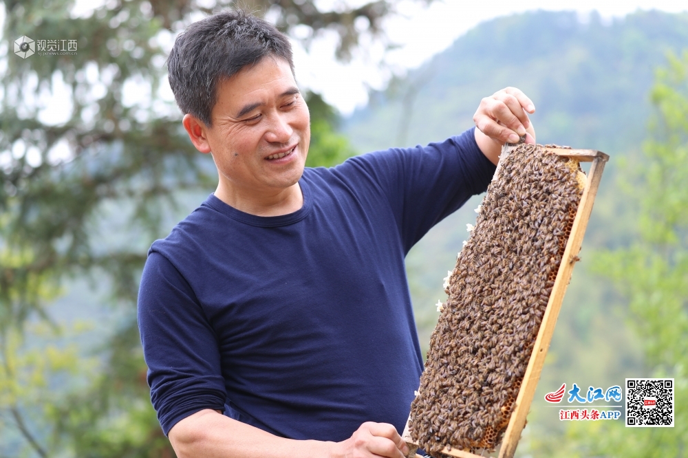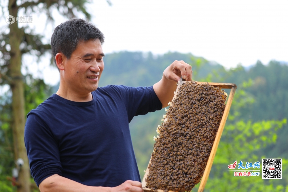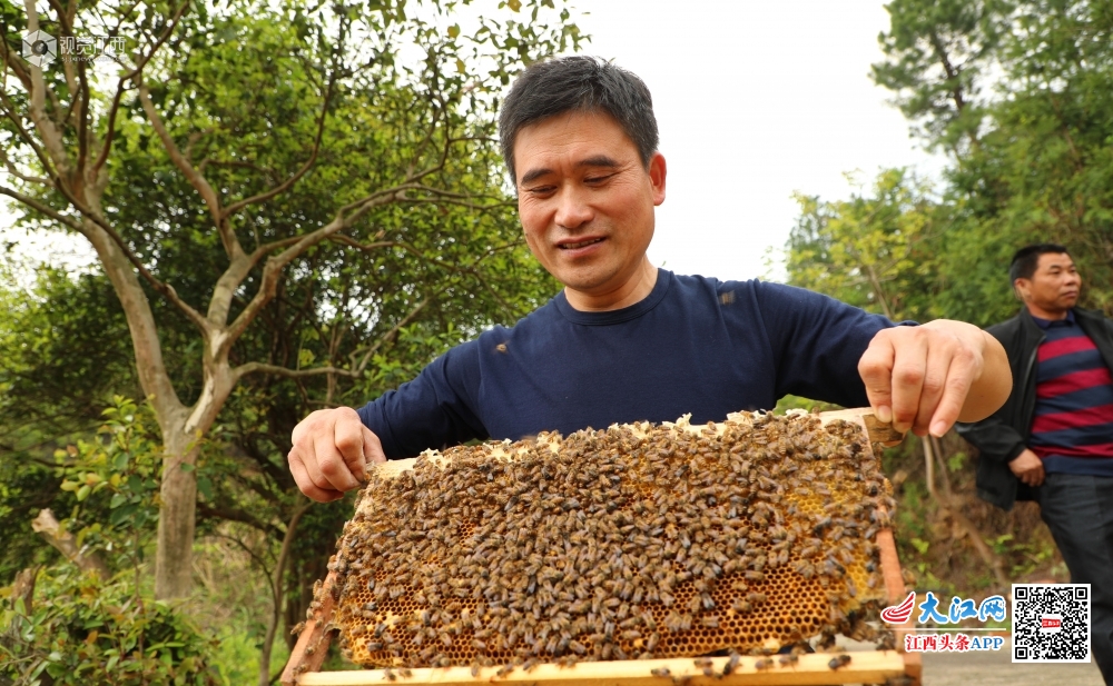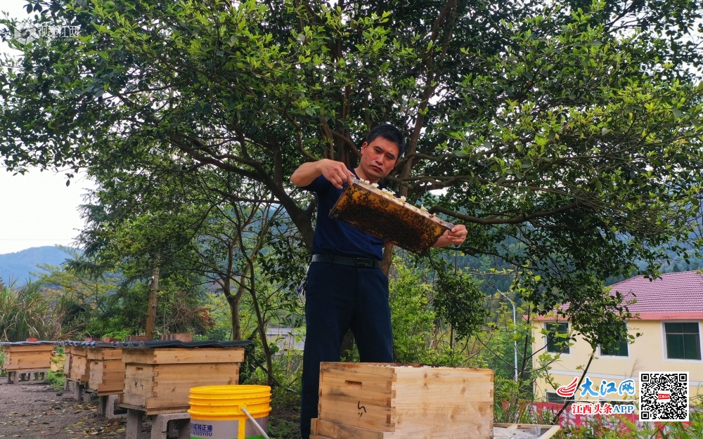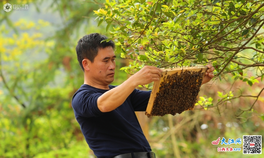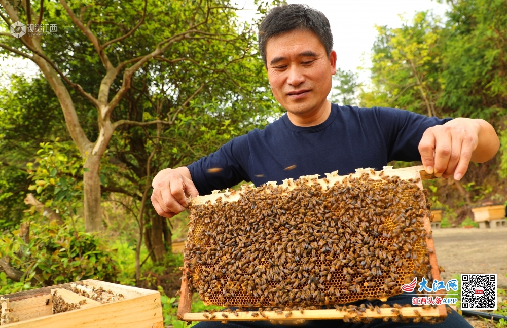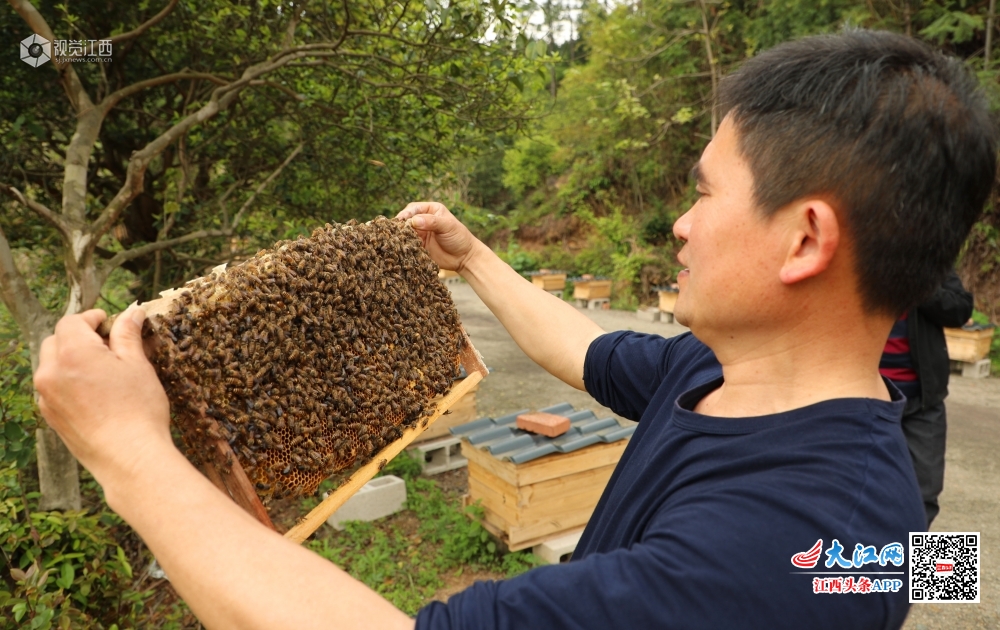 4月10日,在江西省吉安市泰和县老营盘镇小庄村扶贫蜜蜂养殖基地,养蜂能人刘唐祝正在管护蜜蜂。泰和县在做好疫情防控的前提下,积极开展扶贫产业复工复产,降低疫情对扶贫工作的影响,通过“产业+基地+贫困户”的模式,发展扶贫产业,让贫困户实现可持续增收,切实巩固脱贫攻坚成效。