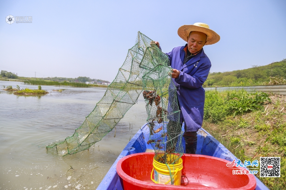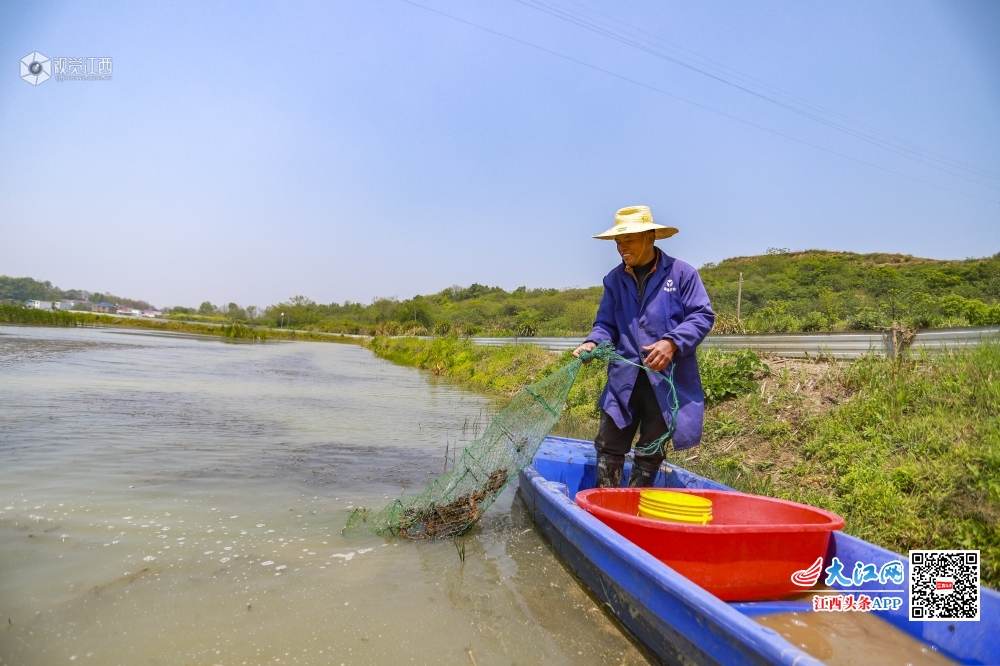 2020年4月12日,江西省九江市湖口县张青乡青龙村生态养殖户张小涛正在起收清水虾。近年来,被评为全国渔业健康养殖示范县的湖口县牢固树立“好水养好渔、好渔净好水”的养殖理念,优化结构,因地制宜,大力发展生态养殖,打造绿色养殖品牌,助力农户增收。视觉江西 张玉 摄