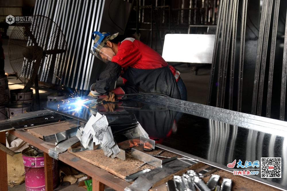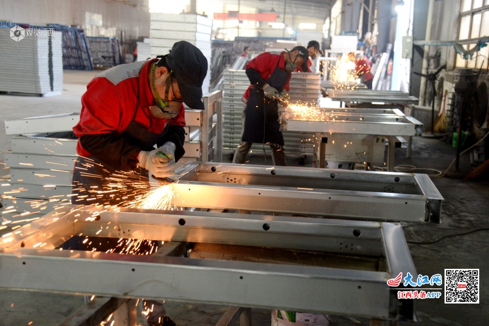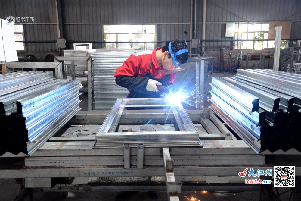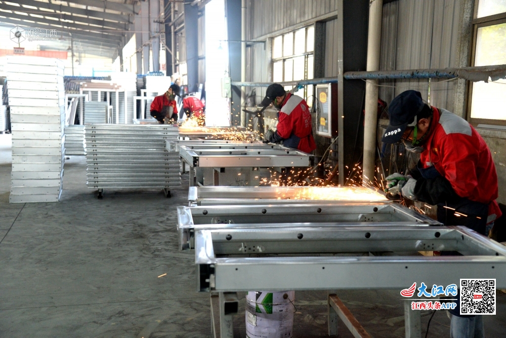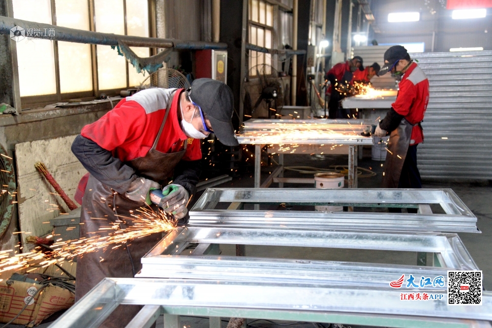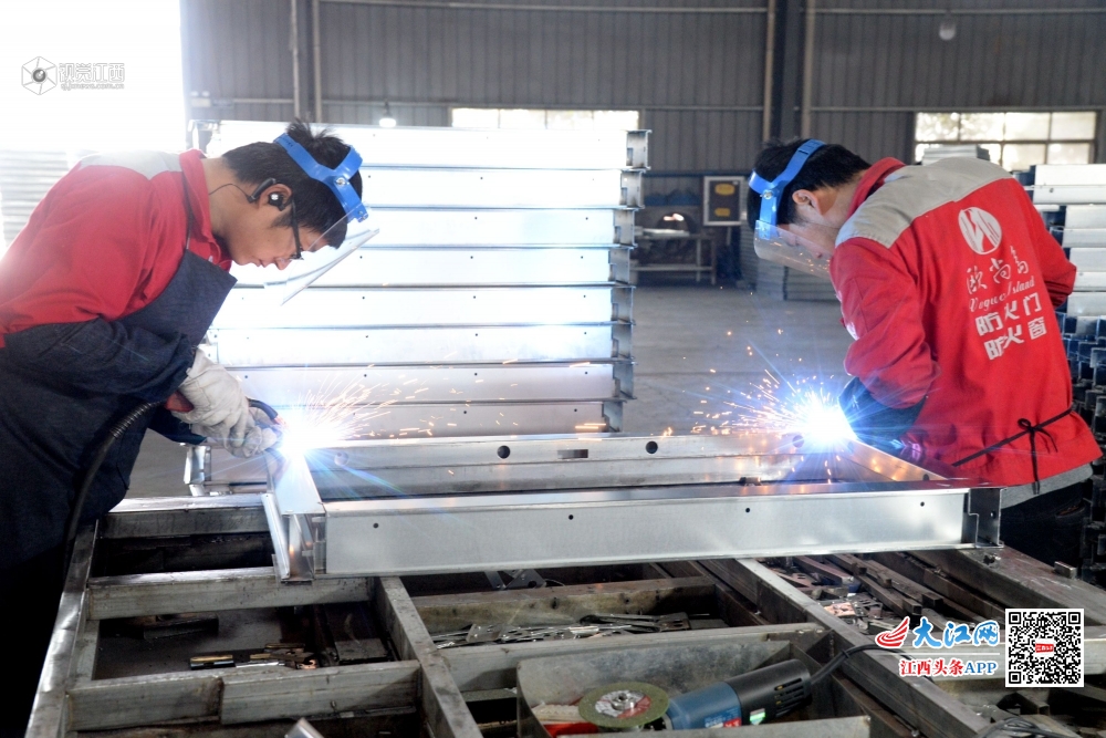 2020年4月13日,坐落在江西省抚州市南丰县工业园区的江西伟隆科技有限公司防火门、防火窗生产线上,工人们正在赶制订单产品,准备销往全国各地。