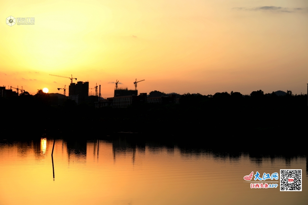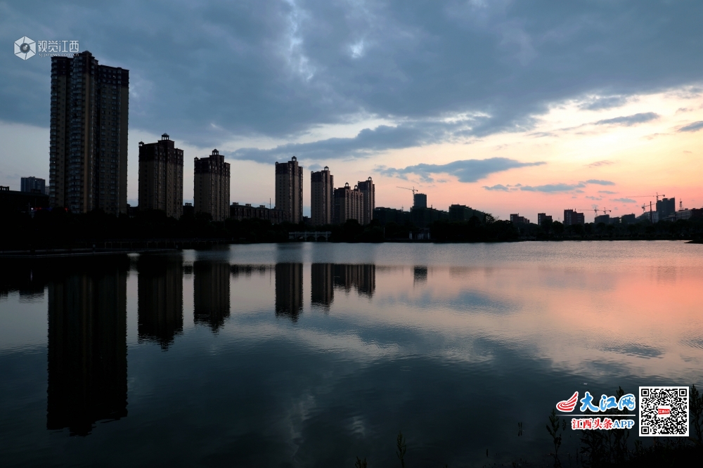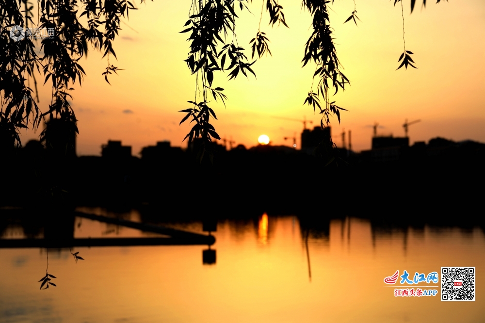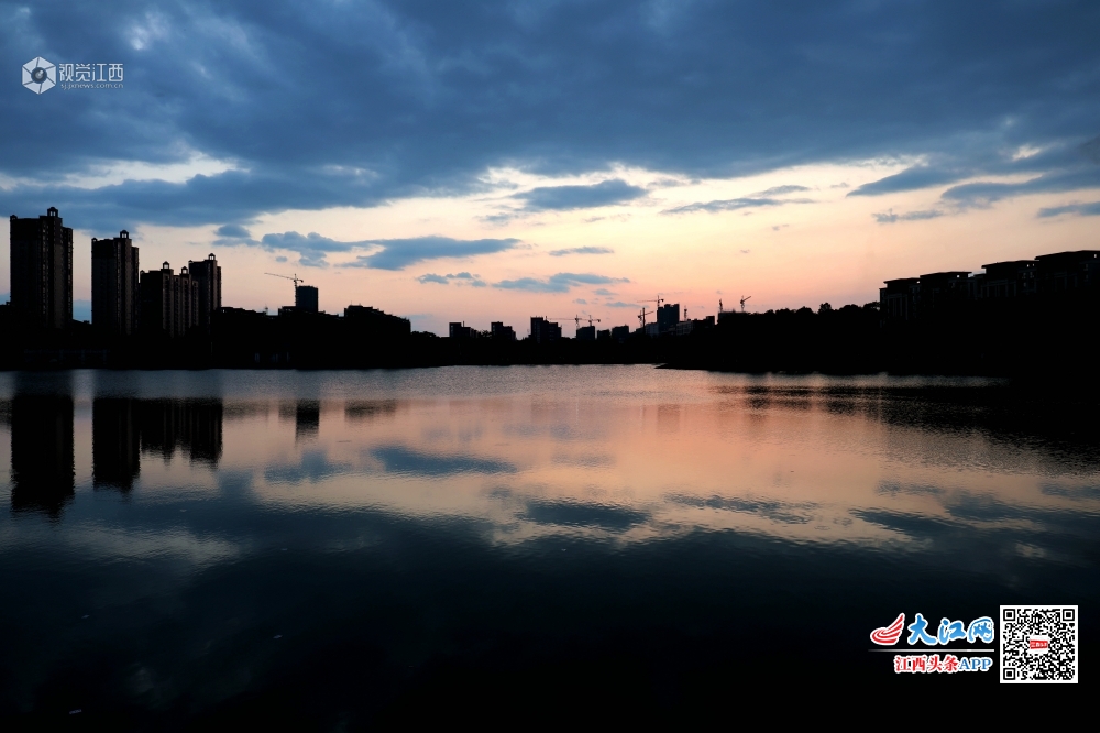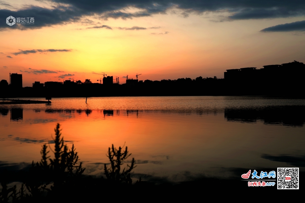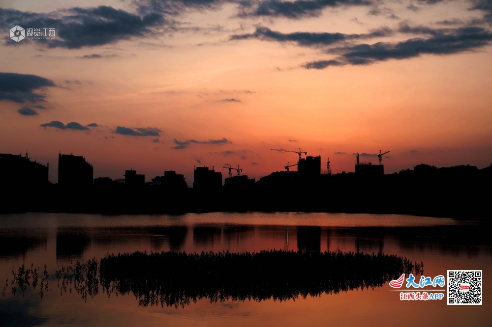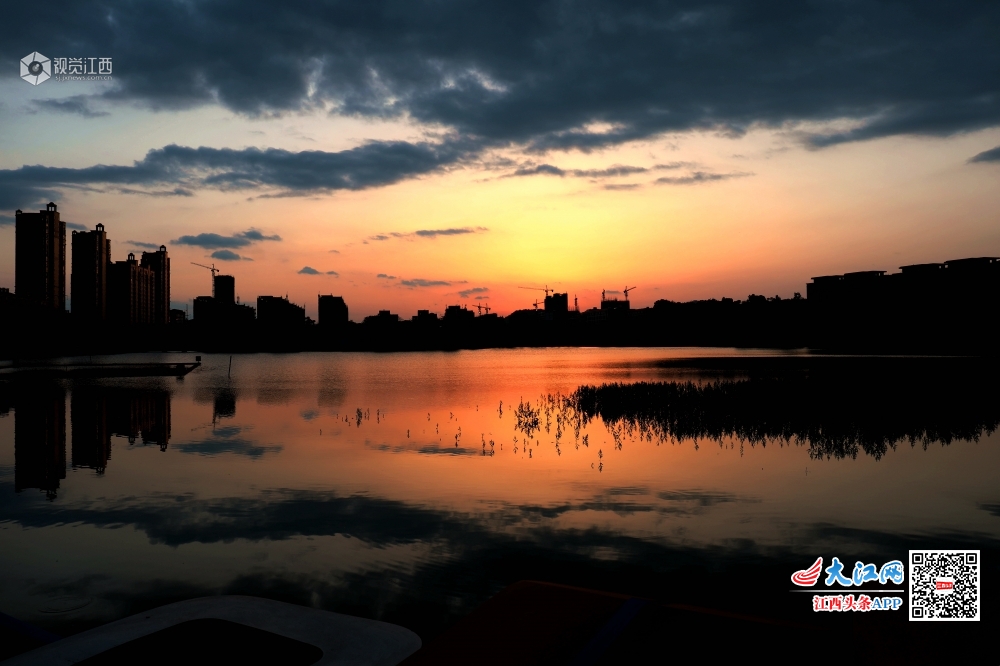 4月19日,江西省分宜县万年湖湿地公园出现美轮美奂的云霞景观,大半个天空被夕阳“涂抹”成了调色板,与地面景物相映成趣,奇美如画。