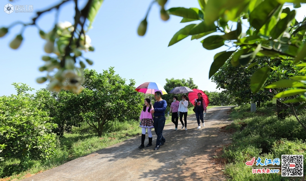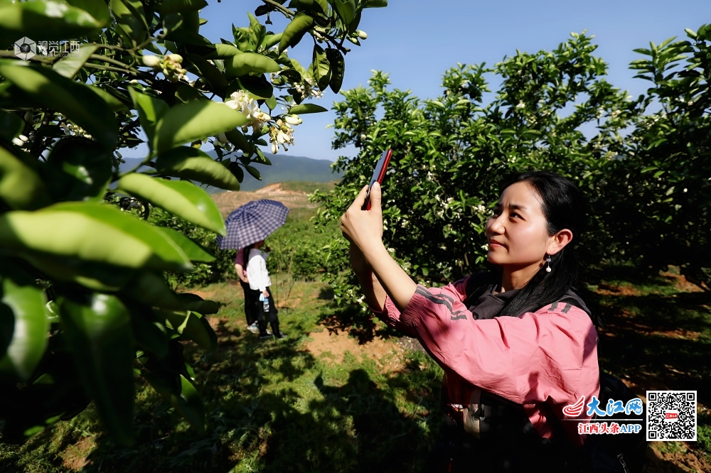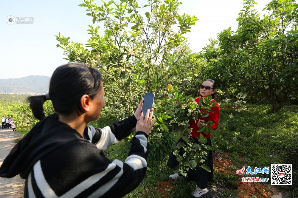 近年来,江西省莲花县依托生态优势,把农业产业与生态旅游结合起来,在增加了农民收入的同时也扮靓了田园乡村。4月16日,该县升坊镇瑞和农场千亩晶沙柚种植基地,满山的柚树开满簇簇白花,扑鼻而来的花香沁人心脾,游客闻香而来,踏青游玩,拍照留影。