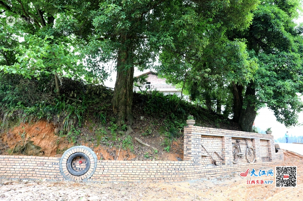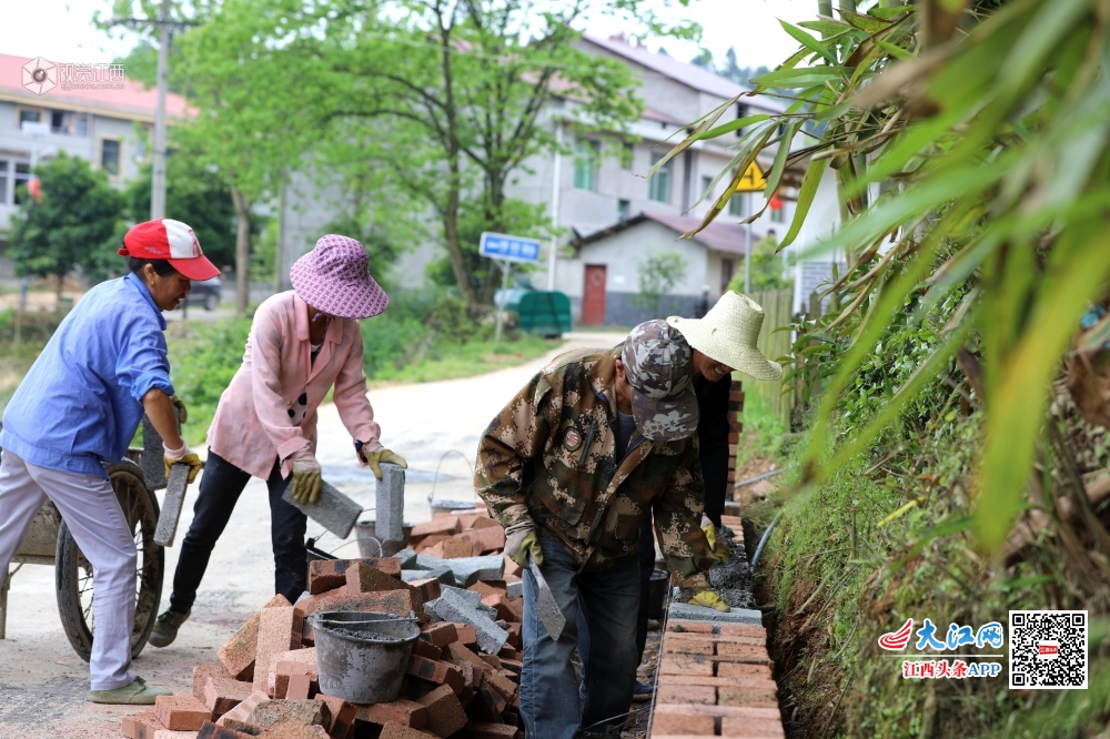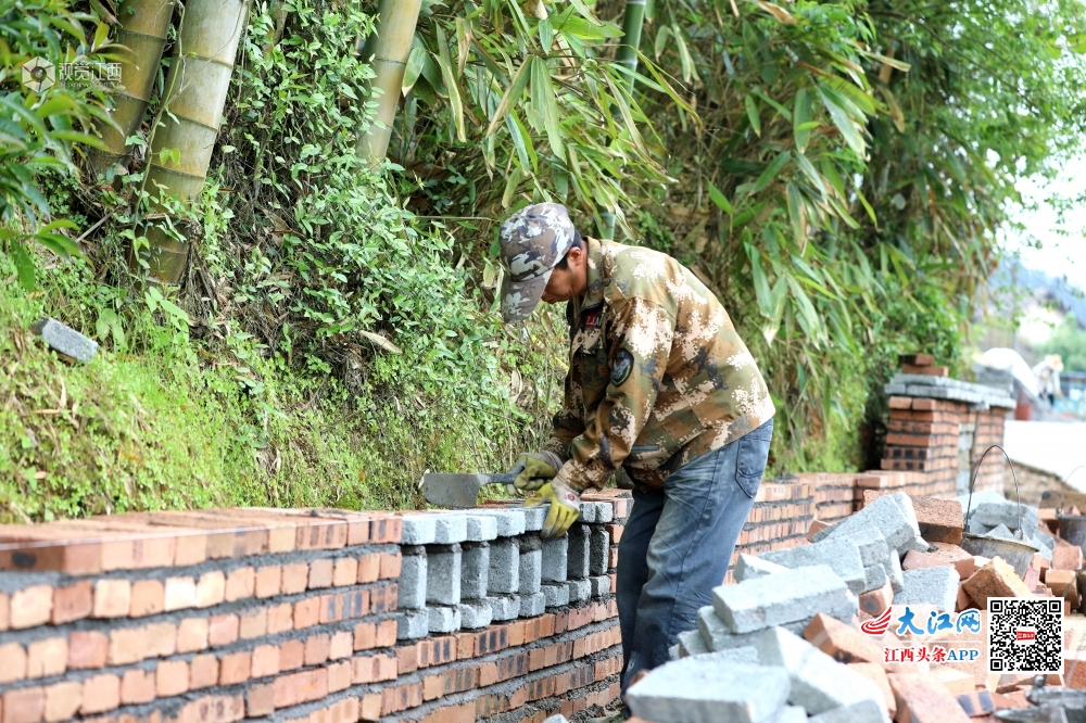 4月20日,江西省分宜县钤山镇木足村村民正在修建房前屋后与道路旁的围栏。