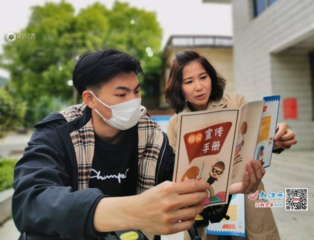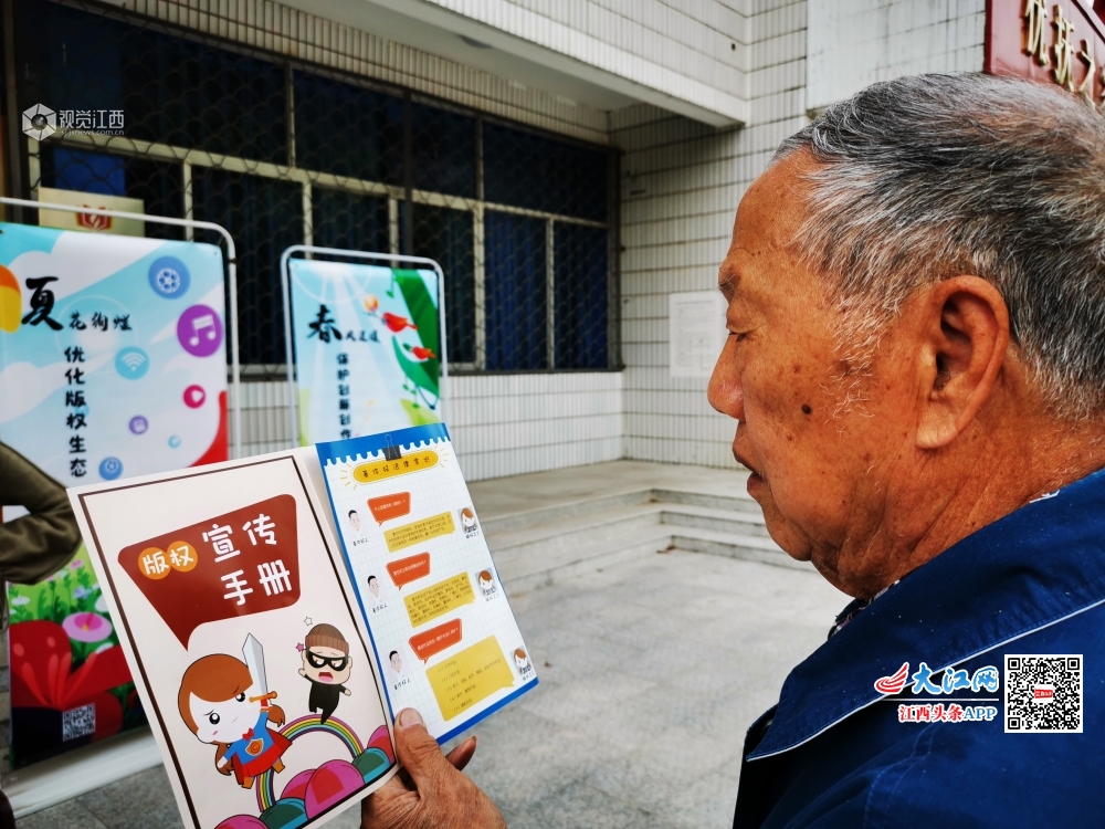 2020年4月24日,在全国“扫黄打非”进基层示范点江西省上饶市铅山县永平镇永铜社区,铅山县文旅新局工作人员向群众宣传知识产权相关法律法规和政策。在第20个“4·26世界知识产权日”即将到来之际,铅山文旅新局联合县委网信办深入开展以“知识版权和健康中国”为主题的宣传周活动,把宣传活动进社区、进企业、进书店、进“扫黄打非”示范点、进网络等,让知识产权保护深入人心。