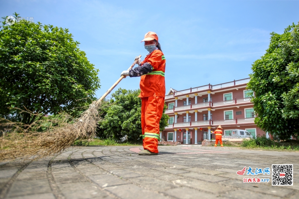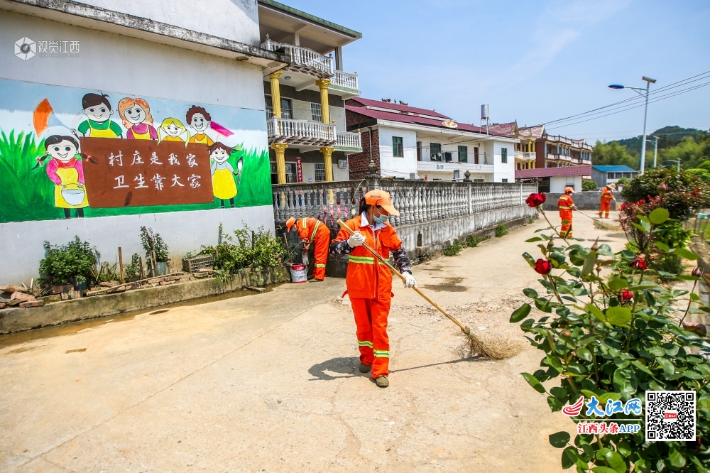 4月26日,在江西省峡江县仁和镇大里村芳田村小组,保洁员在打扫卫生。峡江县将农村环境综合治理作为一项重点民生工程来抓,积极探索农村生活垃圾治理的有效措施,逐步形成“农户分集、村组收集、乡镇中转、县市处理”的四级治理模式,同时健全农村环境卫生管理长效机制,显现出卫生清洁、环境宜人的新景象。