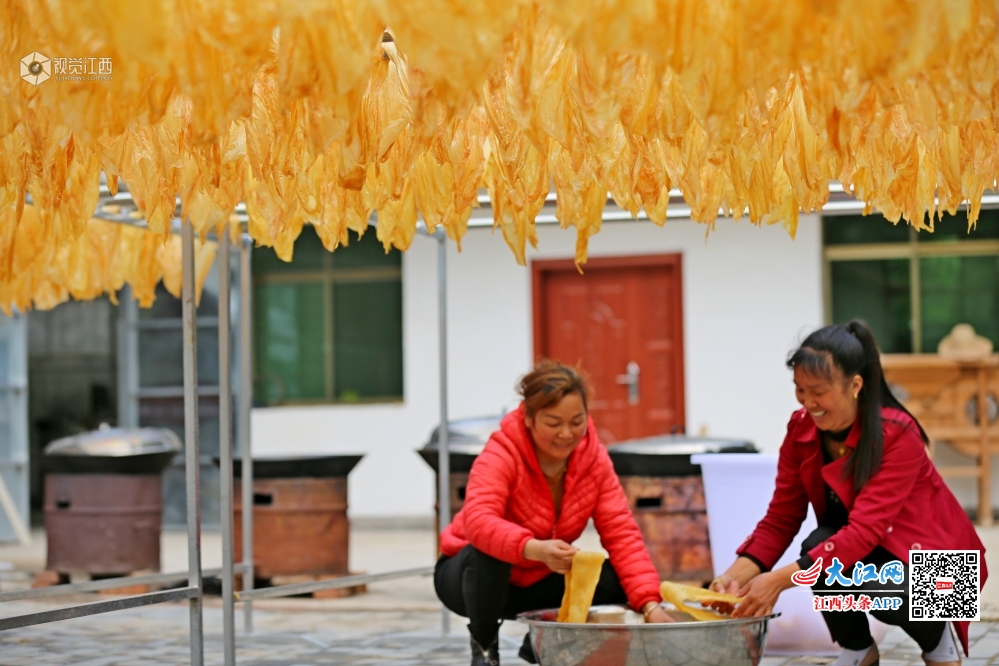 制作腐竹是江西省万安县高陂镇符竹村的传统手工艺,当地以党建引领成立腐竹加工合作社,年产值达40余万元,吸纳了17位贫困群众在家门口实现就业,带动9户贫困户实现脱贫致富。