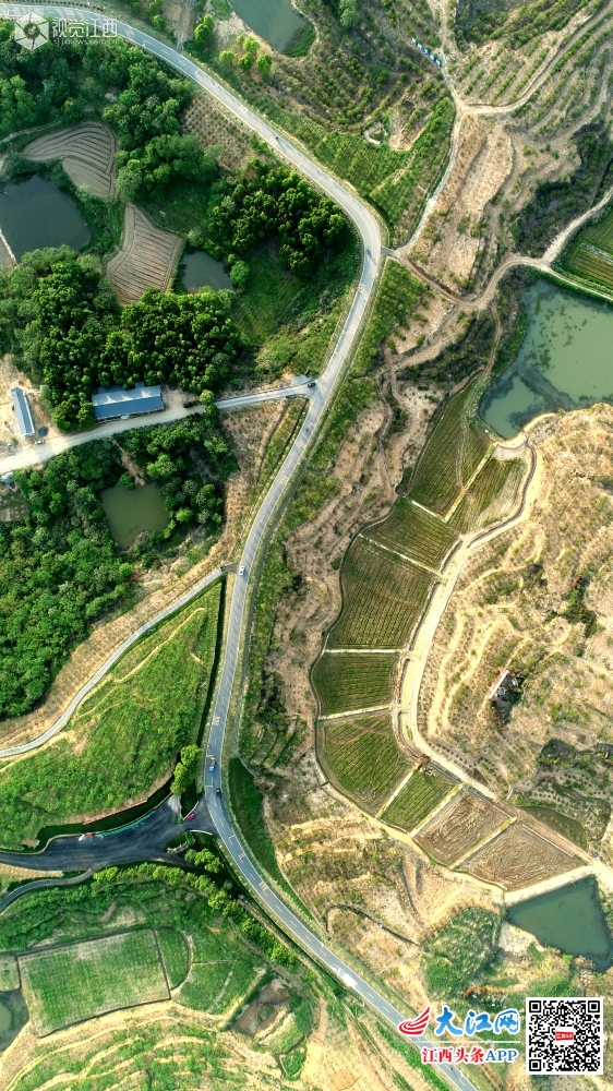 2020年4月26日,无人机俯瞰江西省九江市湖口县武山镇万亩中药材产业基地,一条“四好农村路”穿行其中,与青山、田园和民居相映衬,构成一幅美丽乡村的画卷。当地大力推进“四好农村路”建设和维护,农村公路总里程1100余公里,实现农村道路乡镇互通,村组畅通,带动沿线中药材、油茶、水蜜桃等产业发展,“四好农村路”正成为助力产业发展、振兴乡村经济的致富路、幸福路。